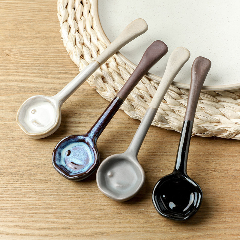 レトロな日本式陶磁器スプーン家庭用キッチンスープスプーン手作りトランペット高颜値粗陶スプーン