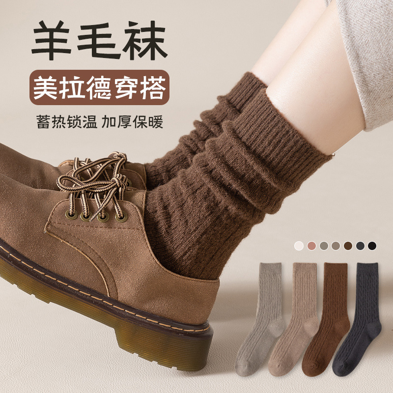 羊毛袜女秋冬季粗线袜子中筒袜羊绒袜美拉德穿搭麻花袜加厚保暖袜