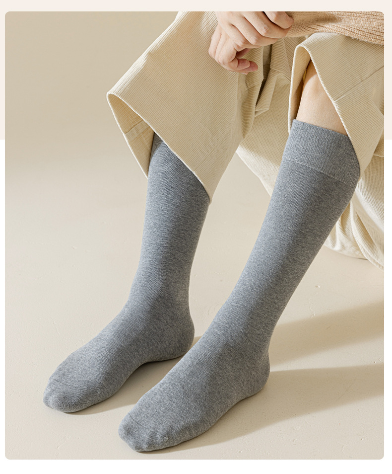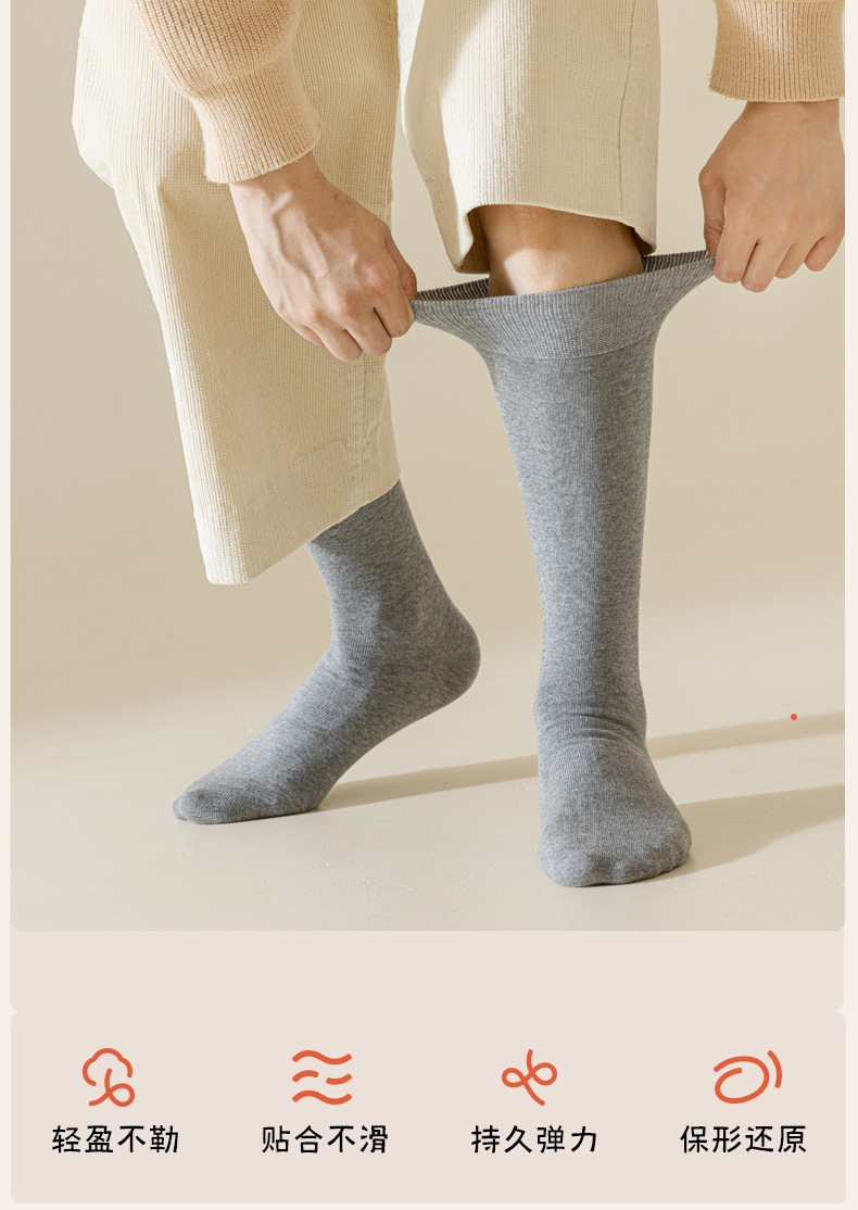 加长袜子男士纯色棉袜运动男袜春秋吸汗防臭诸暨袜灰色高腰袜秋冬