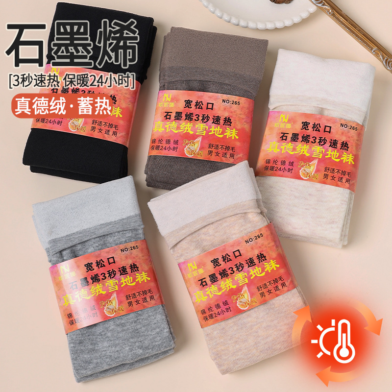 女士石墨烯发热袜子女款冬季加厚中筒加绒保暖袜美拉德德绒雪地袜