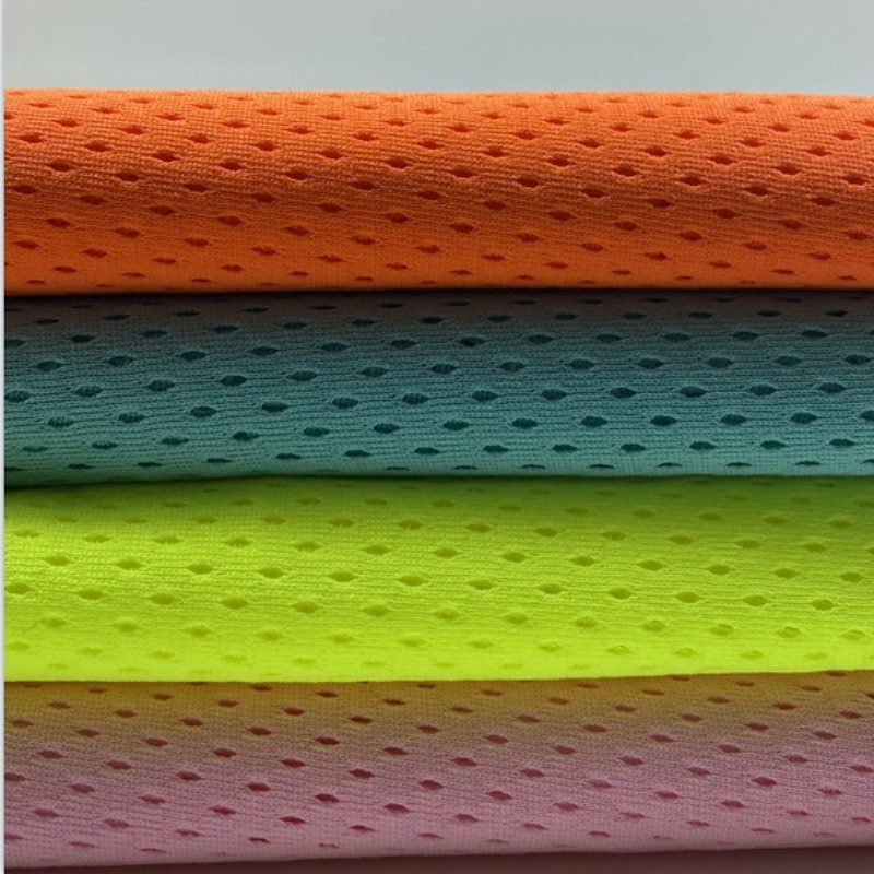 弾力性メッシュ生地全ポリエステル通気性ニット通気性鳥目布日焼け止めシャツコート速乾スポーツウェア生地