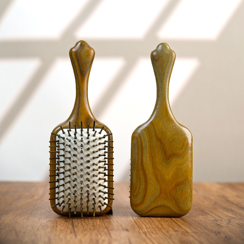 緑檀木エアクッションコーム、混合歯の大型コーム、頭部経絡マッサージコーム、家庭用ロングヘア用無垢材エアバッグコーム