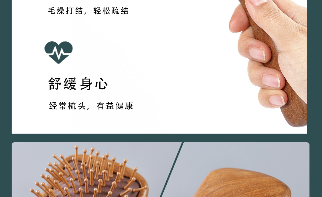 龍鳳檀木大板櫛エアクッション櫛実木エアバッグ櫛小精致女子学生頭部マッサージ櫛頭皮経絡櫛
