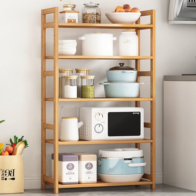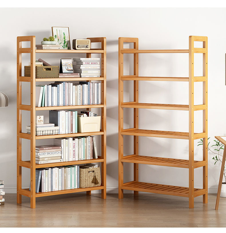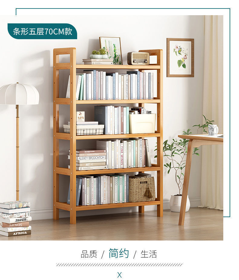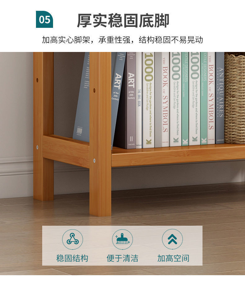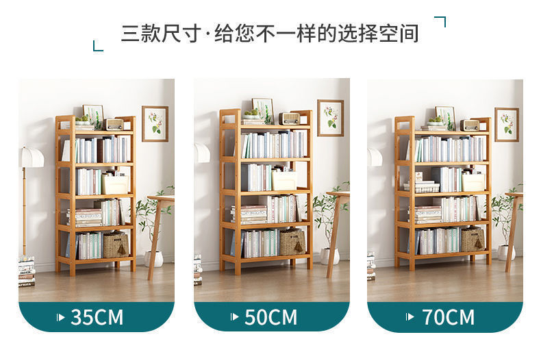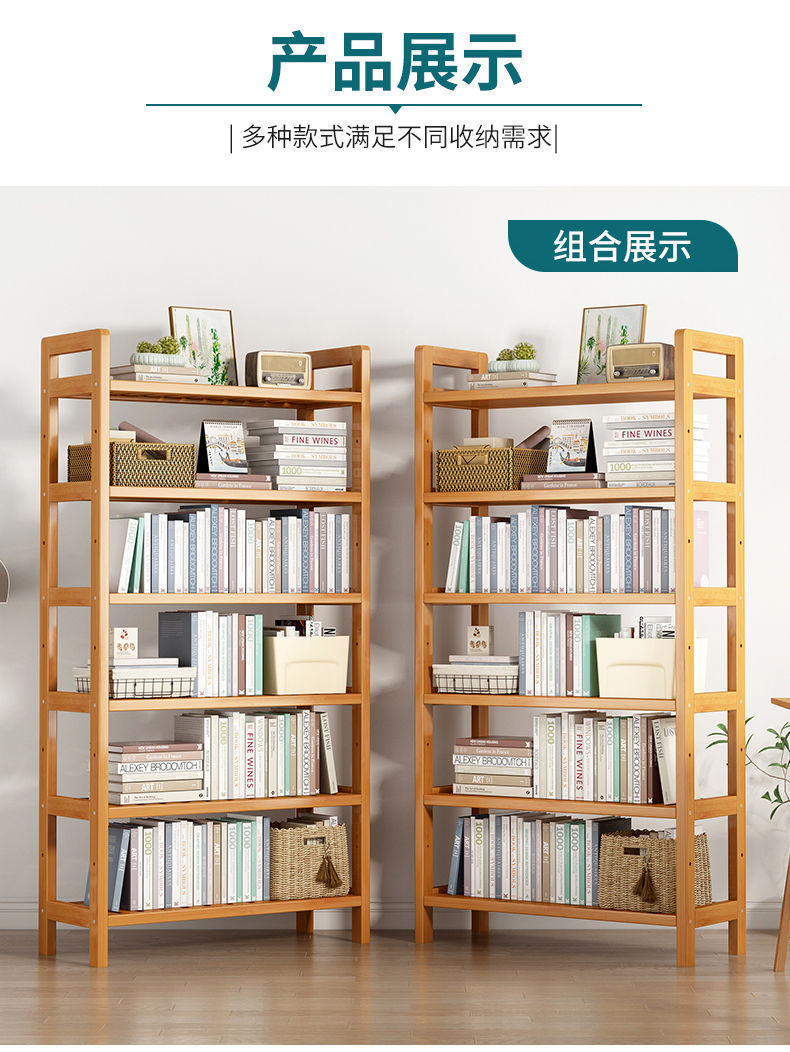 楠竹书架简易多层儿童储物架厨房置物架学生实木客厅收纳书柜落地