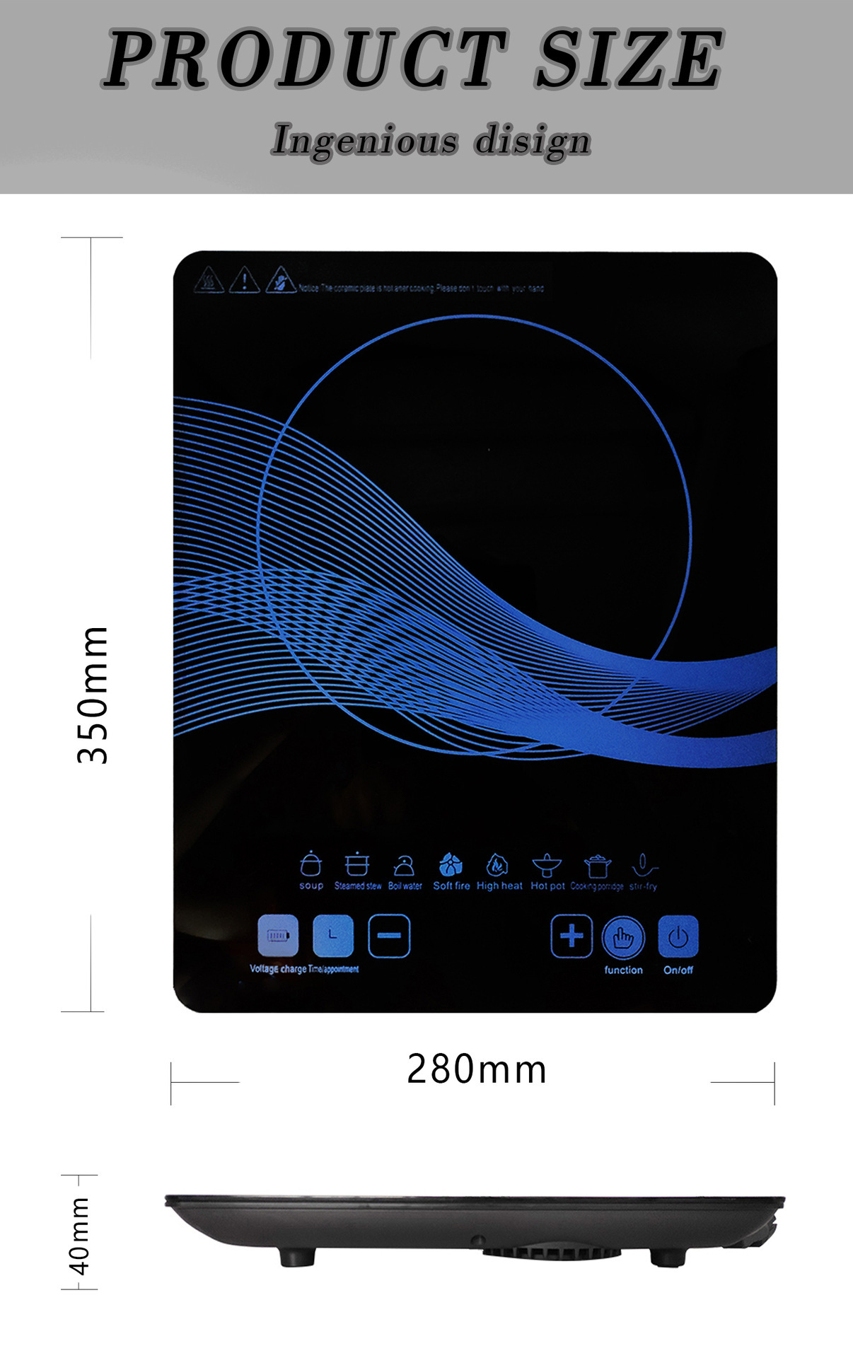 電磁ストーブ製品の厚さ 5センチ