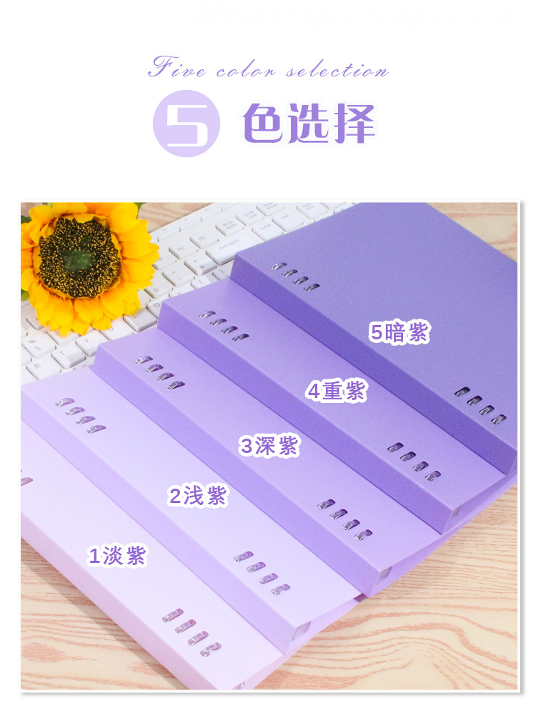 取り外し可能なバインダーノートPP防水グラデーション紫シリーズの引き出し式ノートは手帳の現物卸売りを許さない