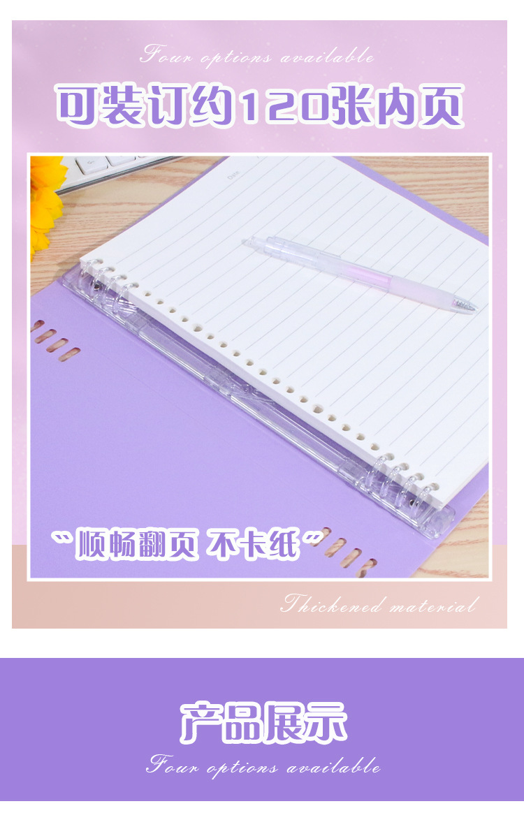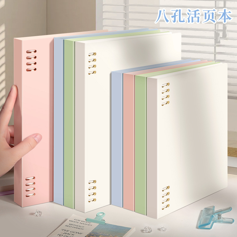 学生向けの新しい8穴の手に優しいシンプルなルーズリーフノート、厚みのある取り外し可能なノートブック、無料の仕切りページ