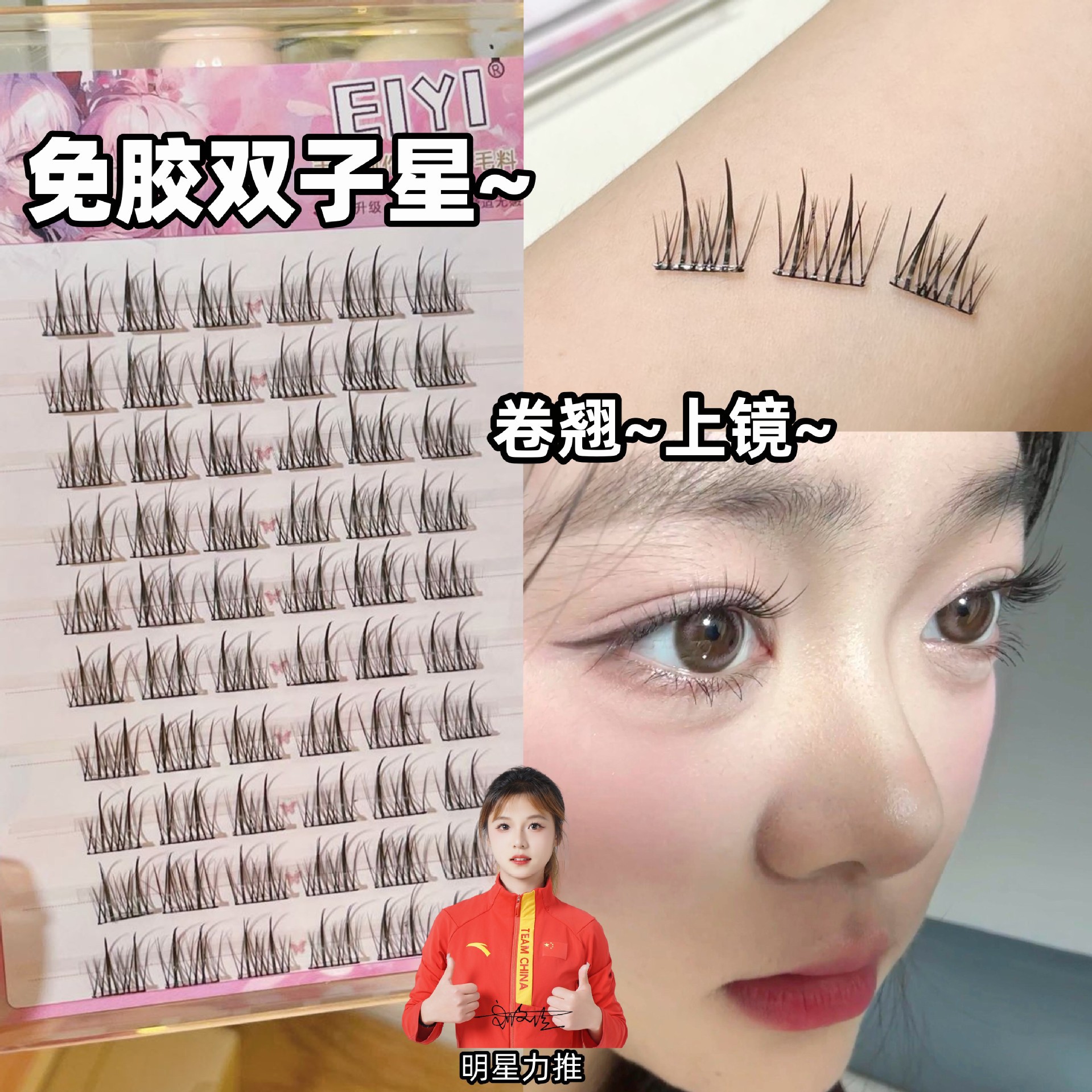 EIYI無料接着剤双子星怠け者双尖太陽花偽まつげ女自然シミュレーション無料接着剤自己接着まつげ