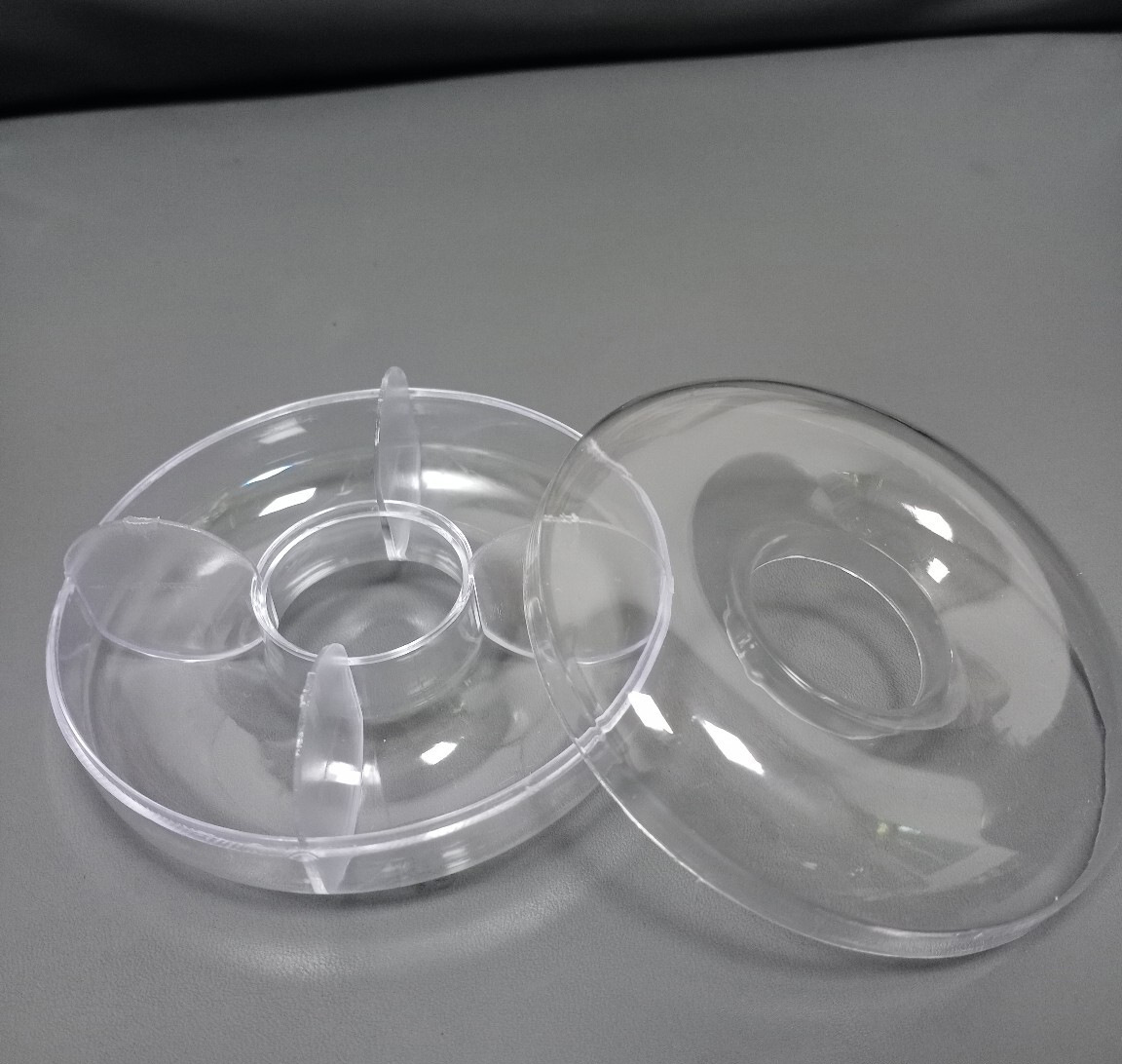 PS透明圆形分格盒糖果休闲食品盒甜甜圈蛋糕拼盘带盖四格包装盒