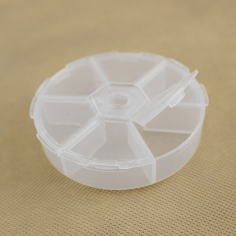 圆形6格透明塑料盒 有盖分类零件收纳盒 渔具首饰包装串珠整理盒