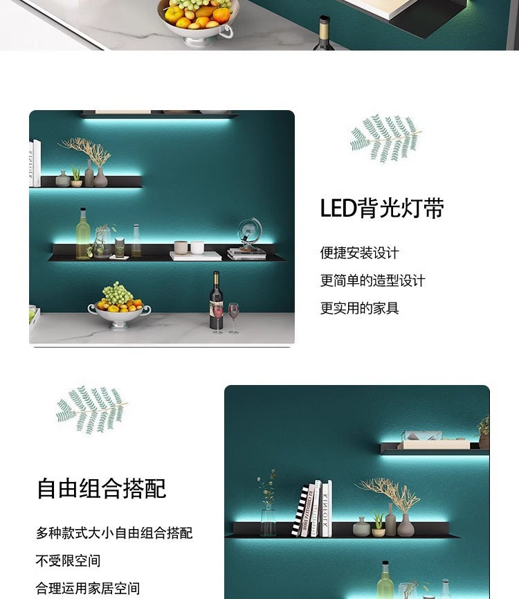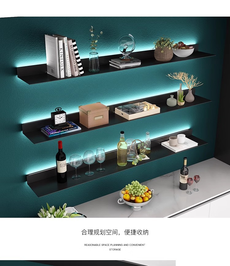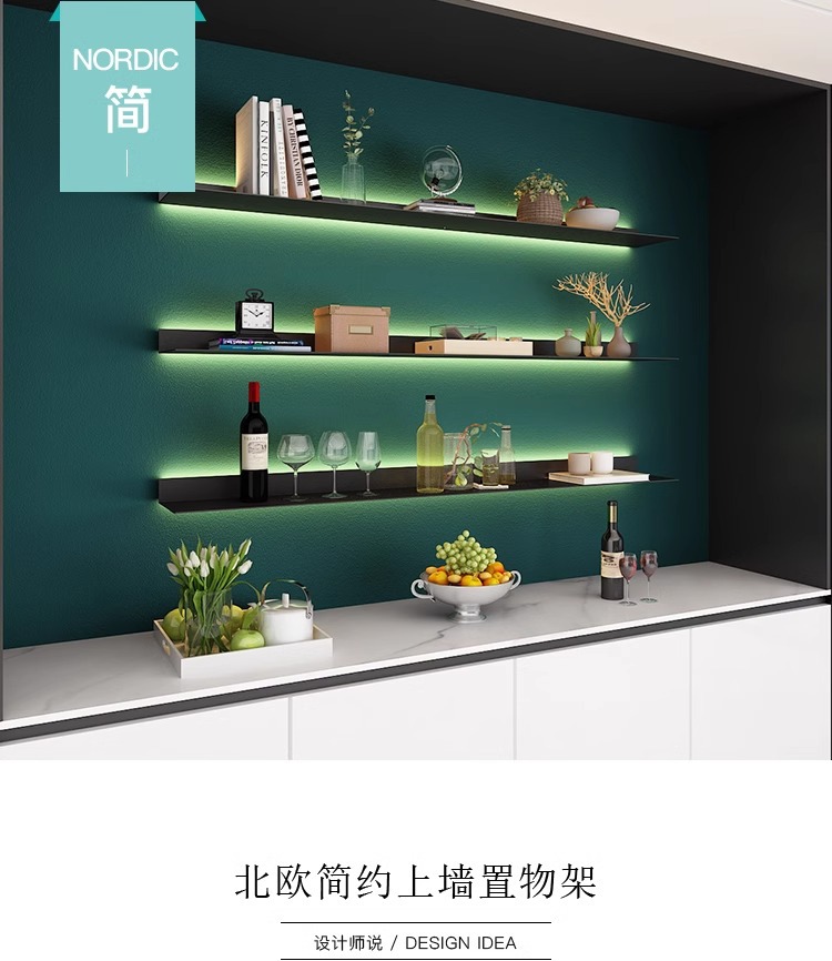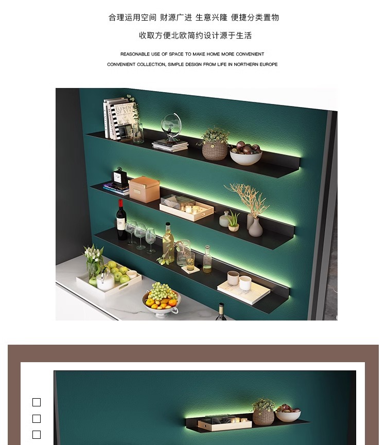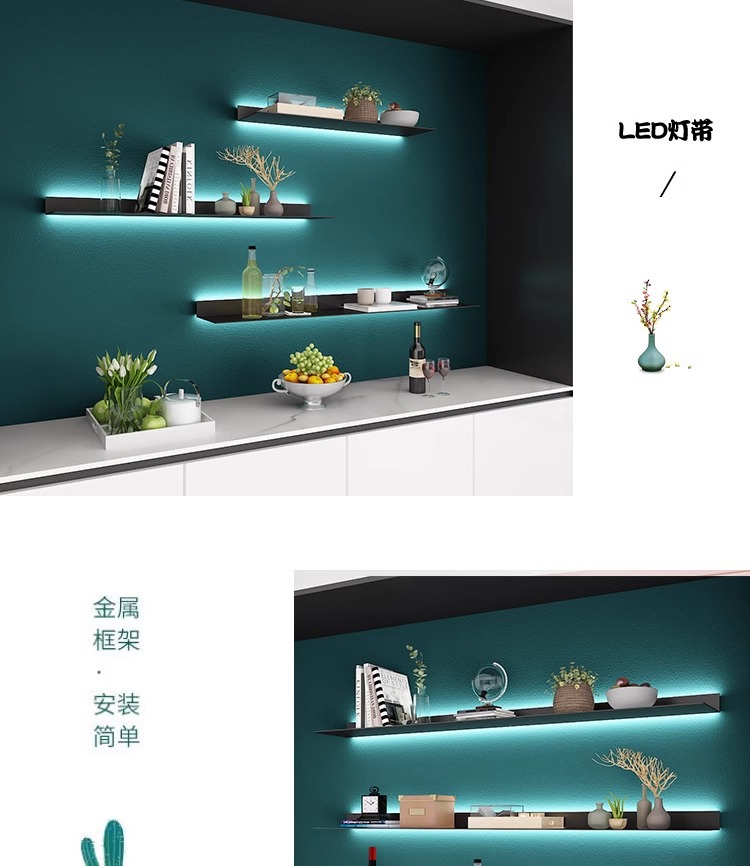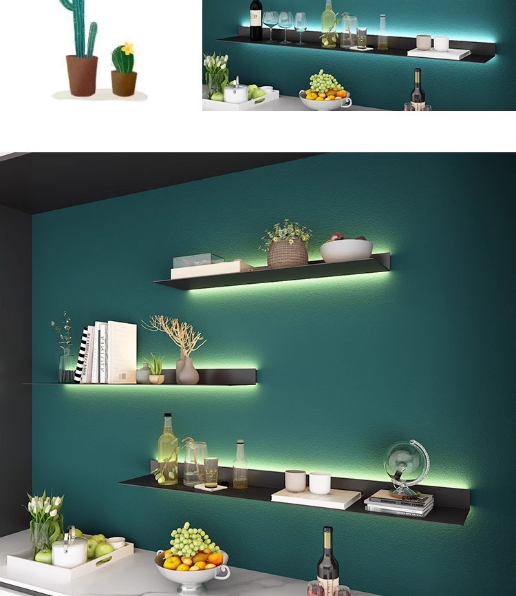 ライト高級壁棚テレビ壁装飾ラックリビングルーム寝室パーティションワンラインアイアンシェルフ収納ラック