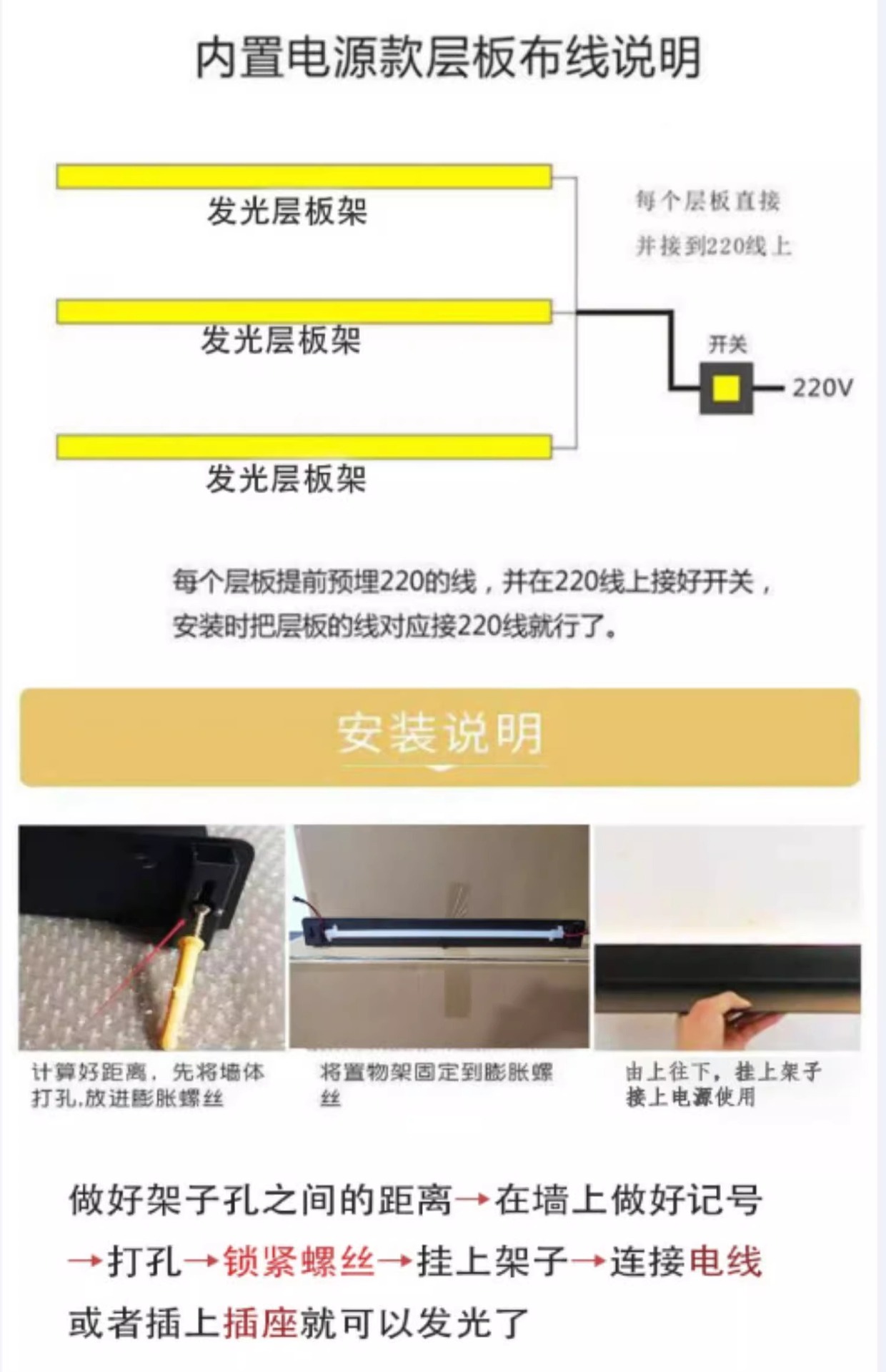 アルミ合金発光積層板LED物置棚収納壁掛け展示L型棚棚棚棚棚棚灯付金属仕切り板