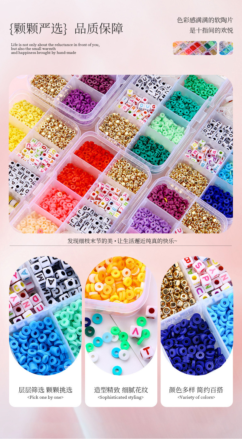 国境を越えた4mmの柔らかい陶片セットのアルファベットのビーズのブレスレットのビーズのブレスレットのdiyのアクセサリーの部品の材料の柔らかい陶片