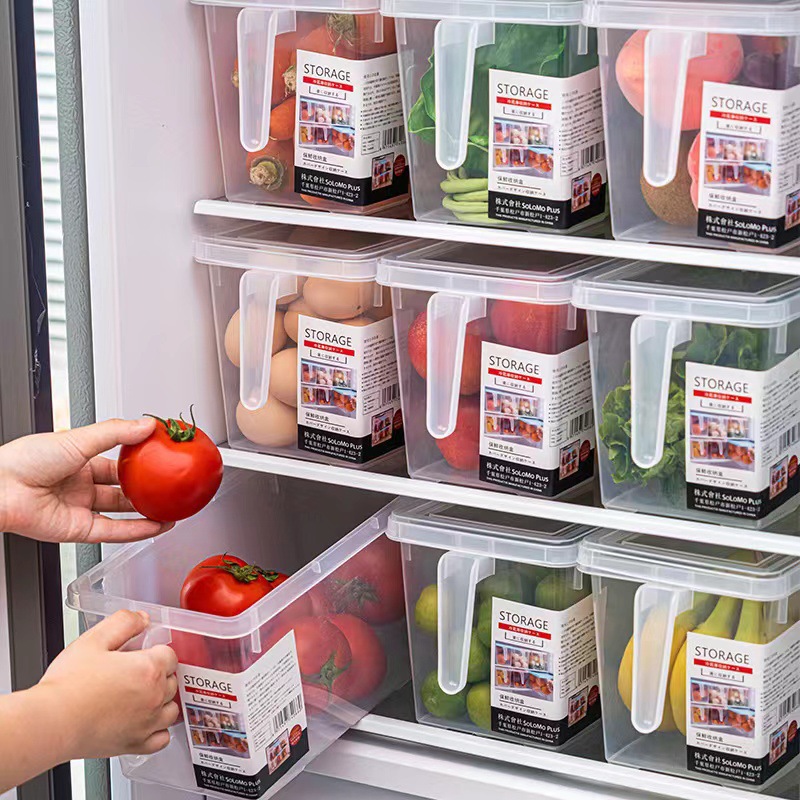 キッチン冷蔵庫冷凍庫収納ボックス長方形透明食品保存ボックスプラスチック密封蓋付き排水収納ボックス