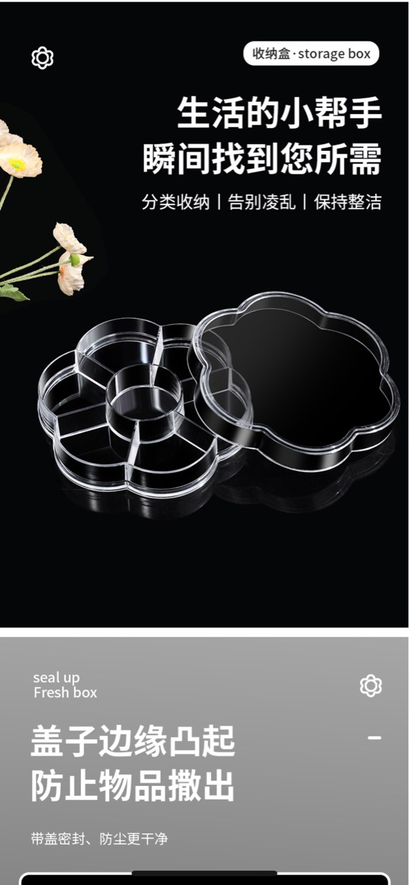 メーカー直供透明プラスチック7格梅包装箱アクセサリー包装箱花弁形収納ケース