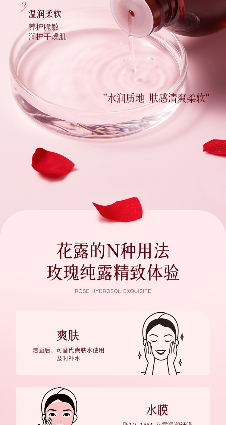 貝玲美ダマスカスのバラの純露は水を補って保湿して保護します。