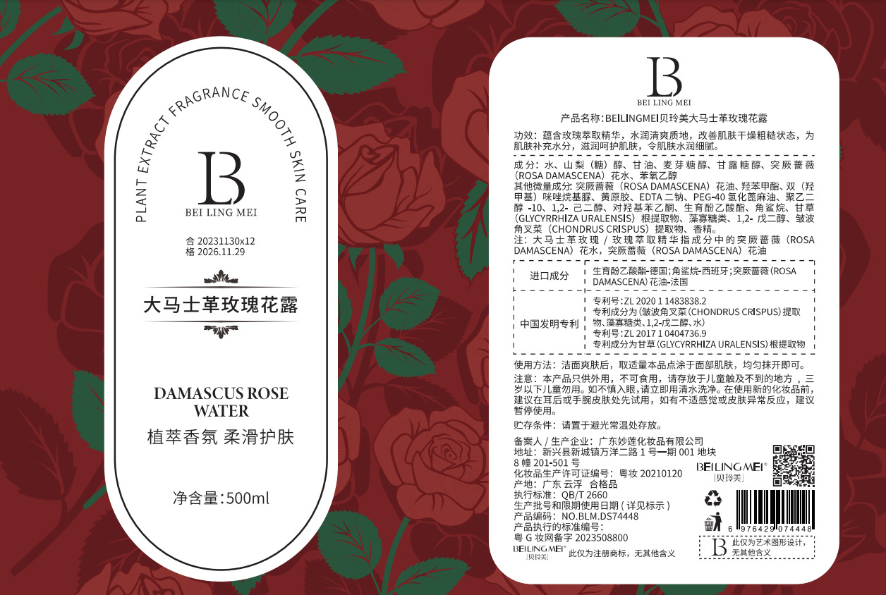 製品仕様 ベイリンメイ ダマスカス ローズウォーター 500ml