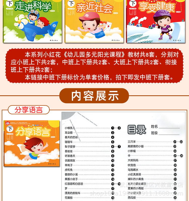 本款小红花《幼儿园多元阳光课程》中班下学期,全套6册,标价为单套的价格,拍下发整套!