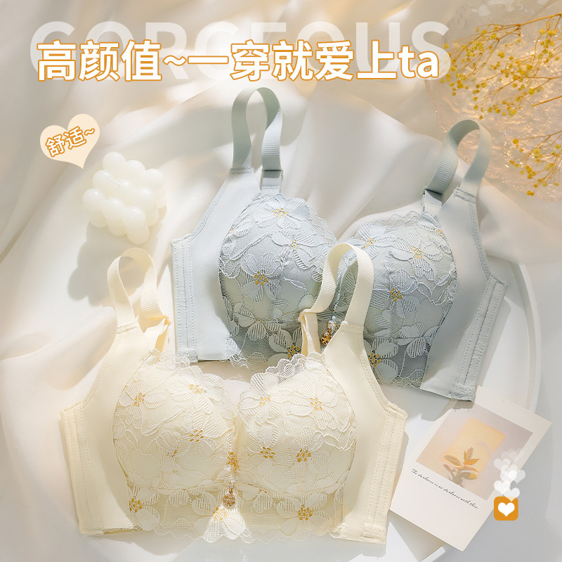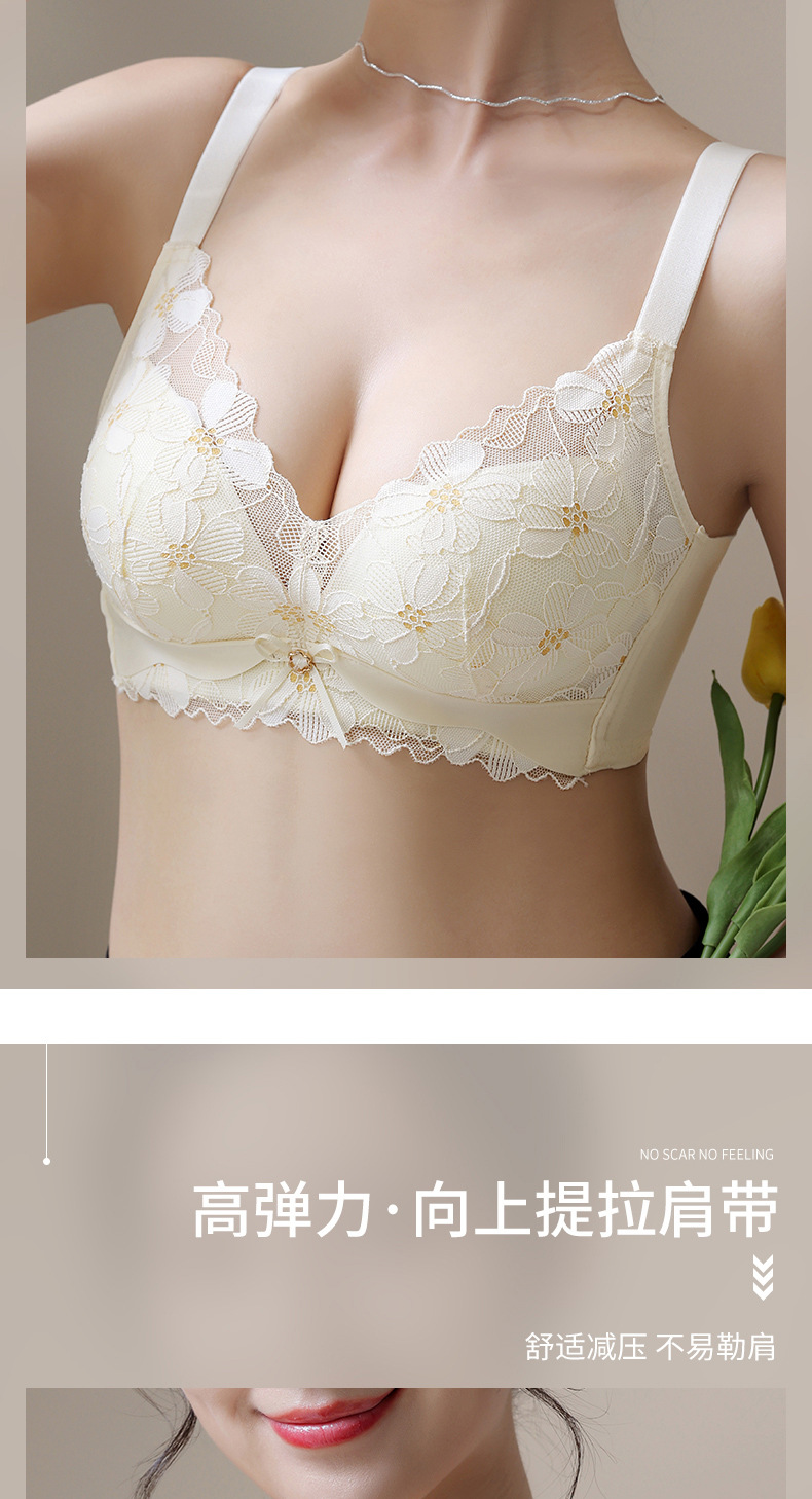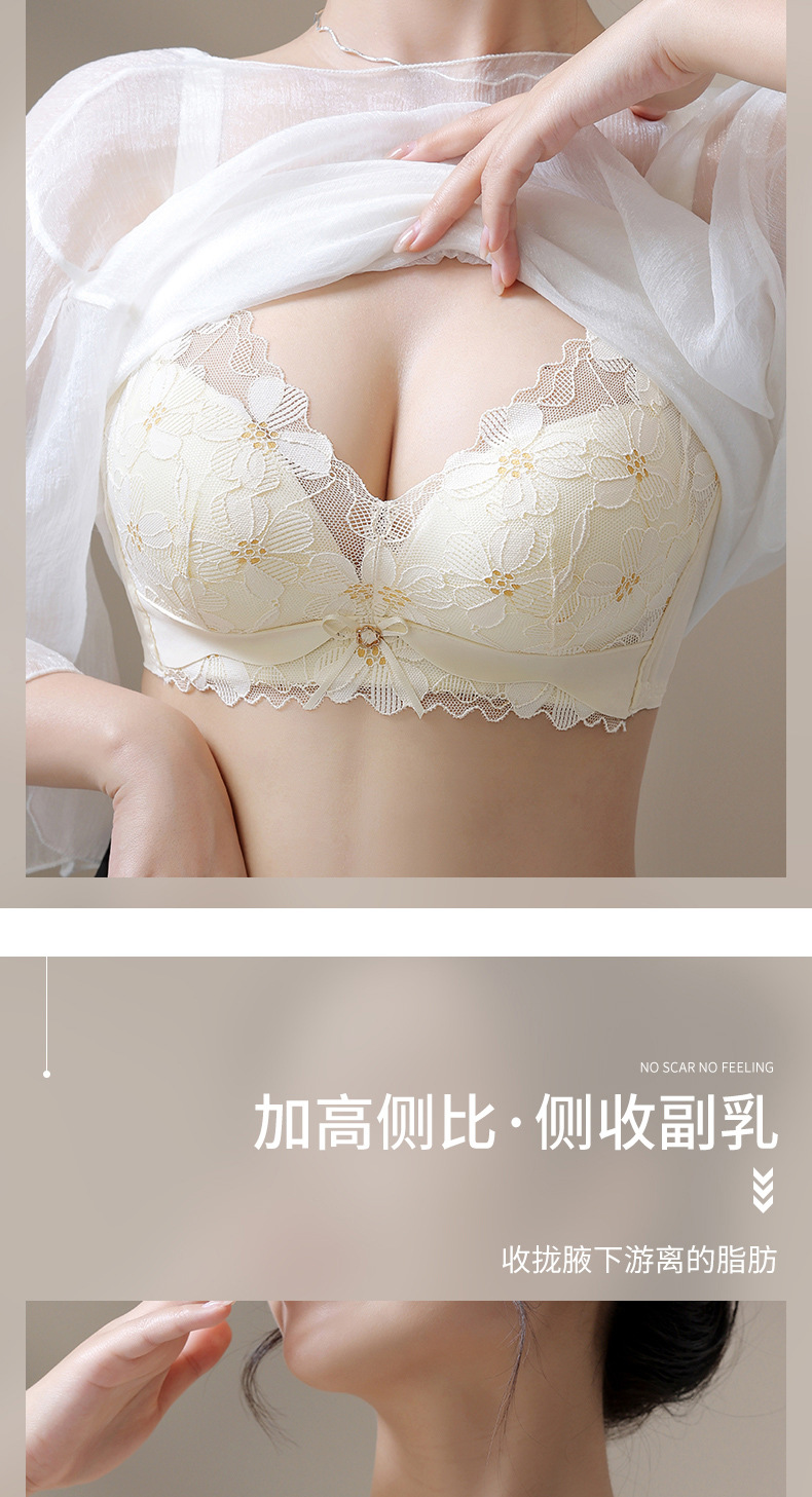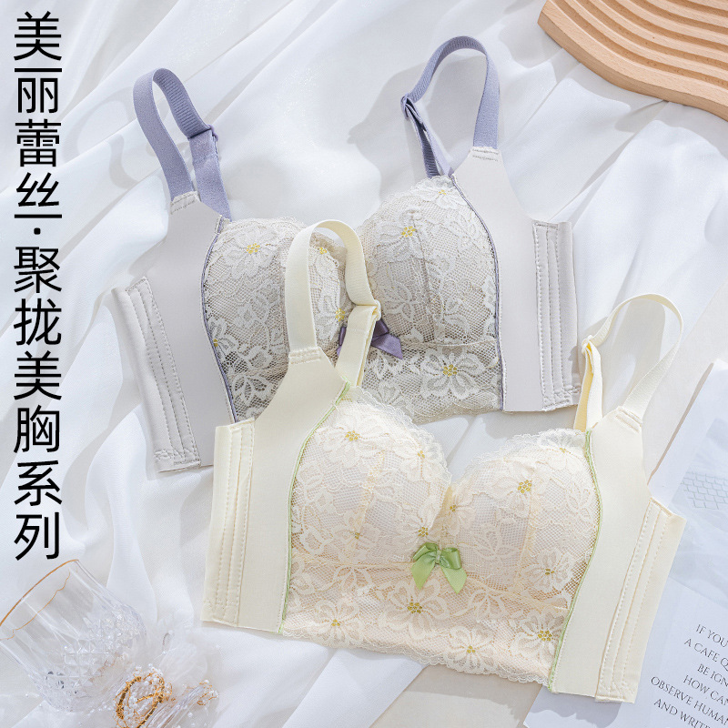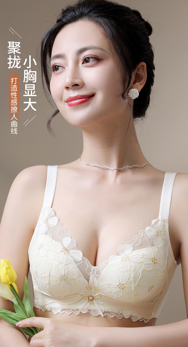 新品舒适透气内衣女小胸聚拢收副乳无钢圈无侧骨文胸时尚蕾丝胸罩