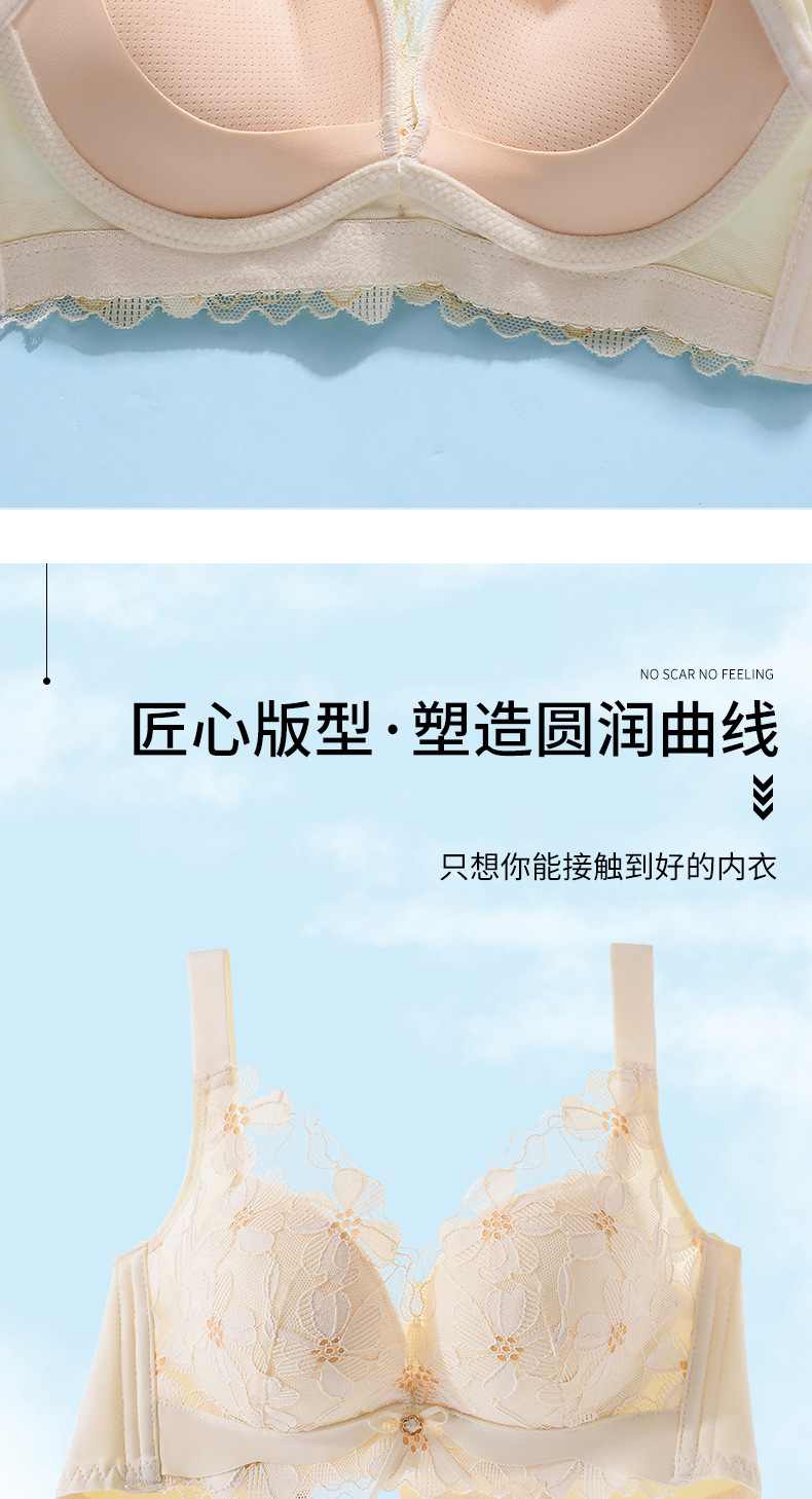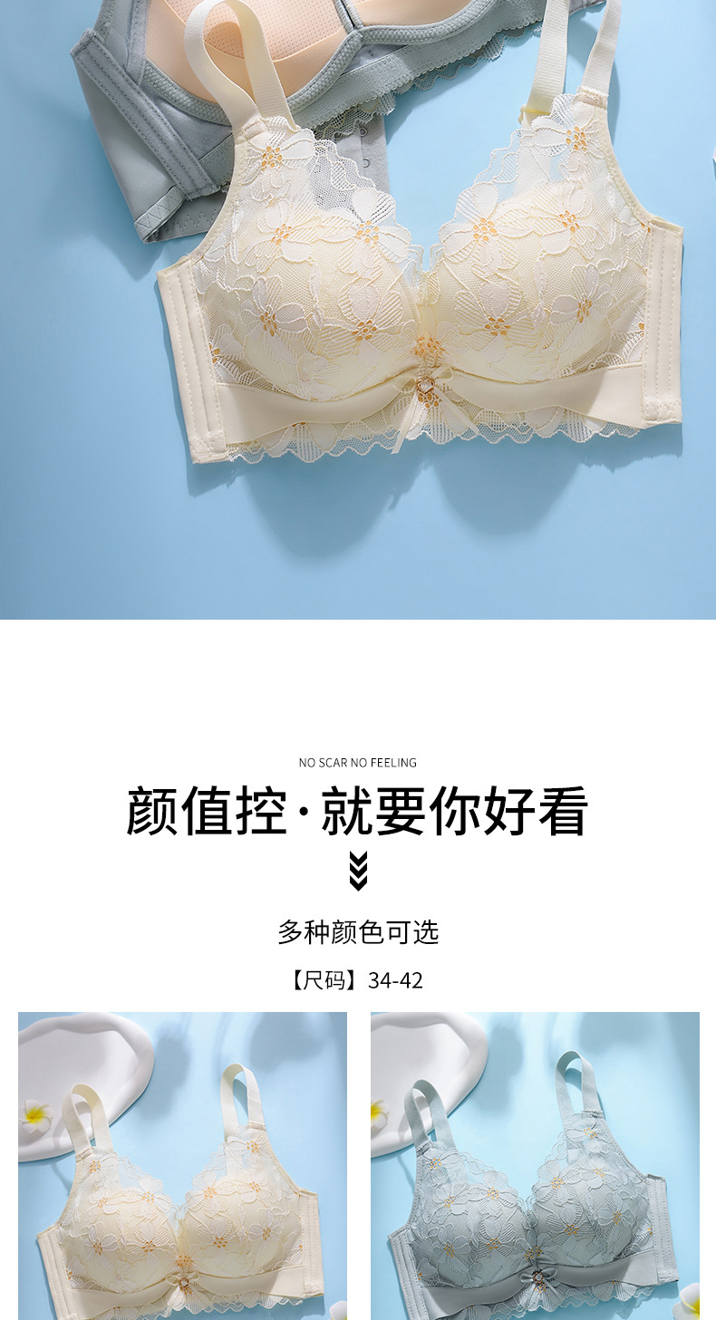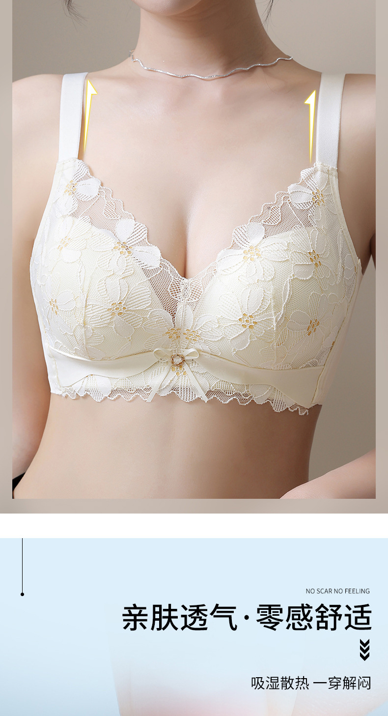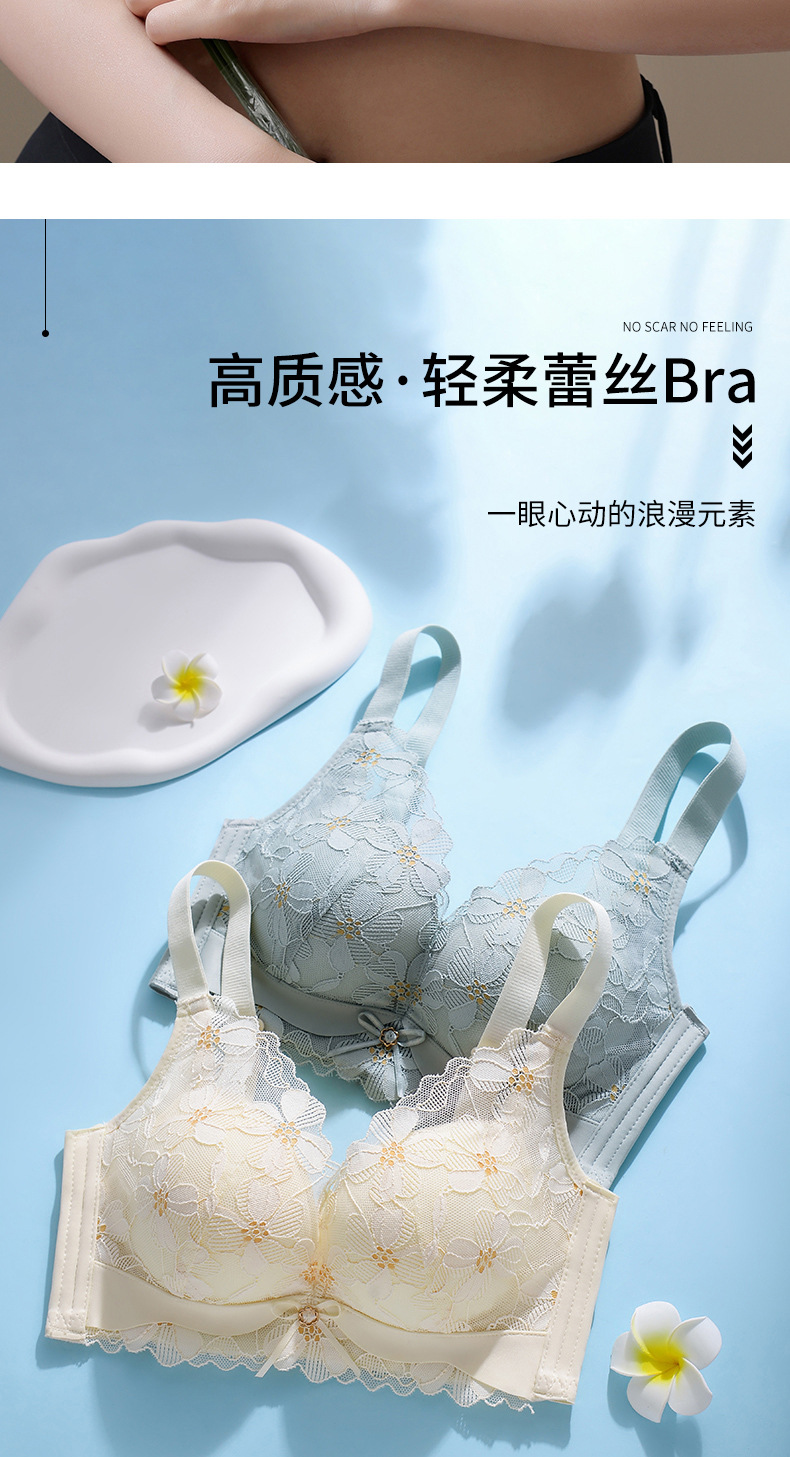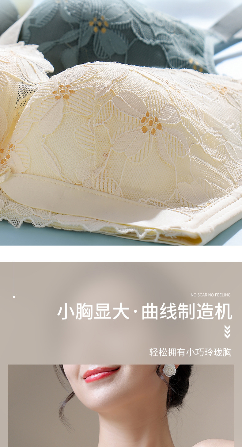 新品舒适透气内衣女小胸聚拢收副乳无钢圈无侧骨文胸时尚蕾丝胸罩