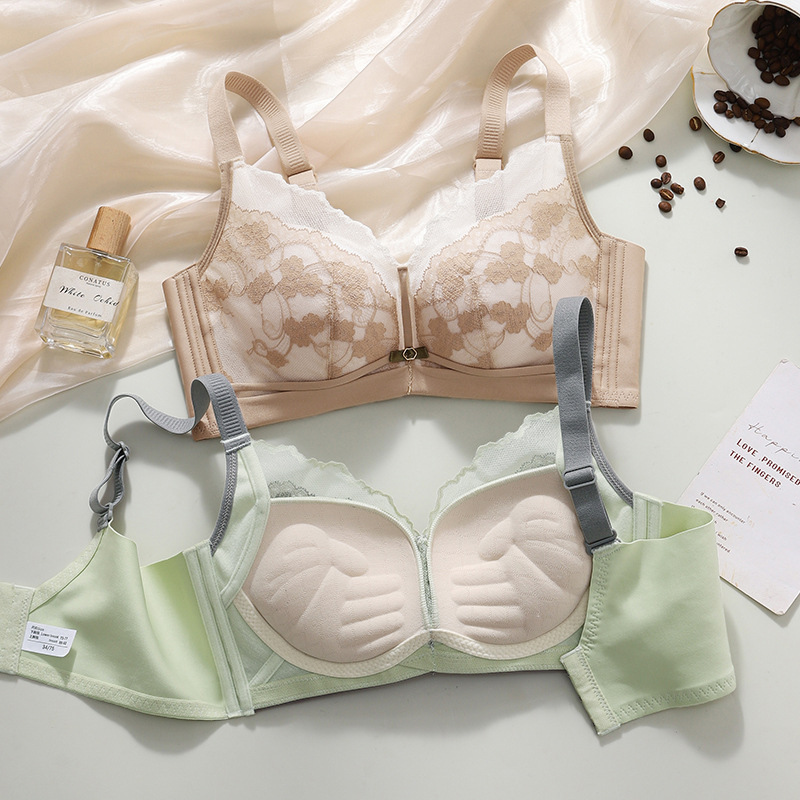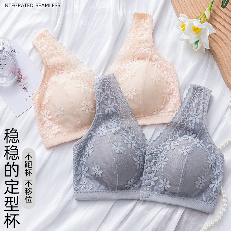 母親用ブラジャー、中年女性、高齢者、中高年向け、フロントボタン、ノンワイヤー、プッシュアップブラ、快適なプッシュアップブラ