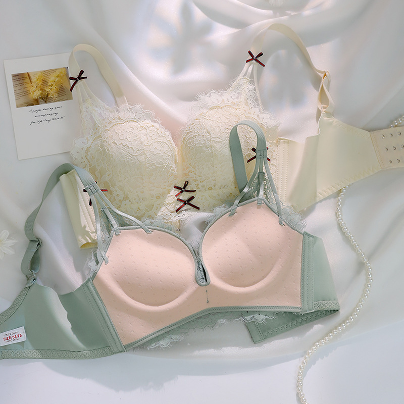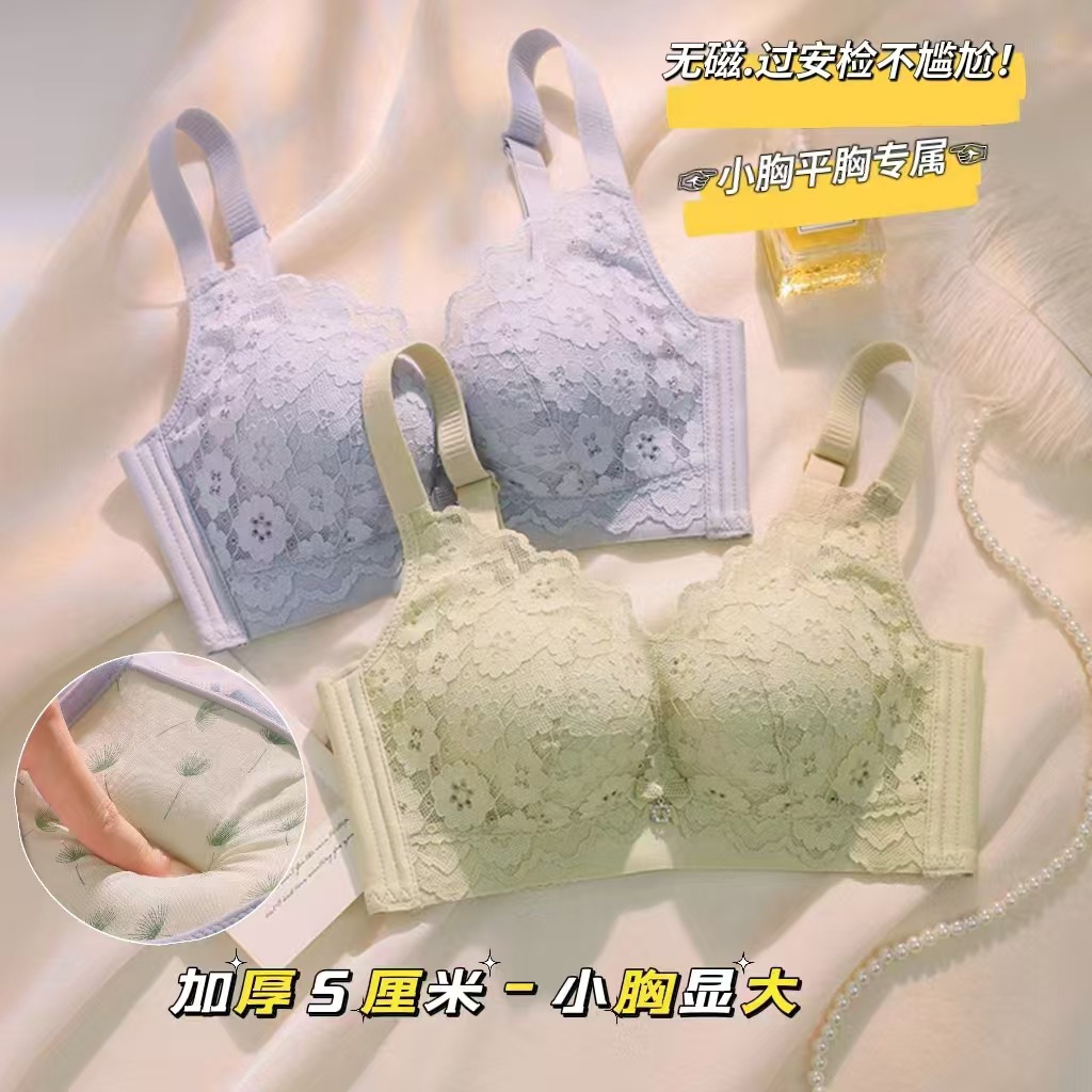 8823 5センチの小胸を厚くして、下着の女性のスチールリングなしの通気性が快適で、垂れ下がり防止レースのブラジャーを集めた