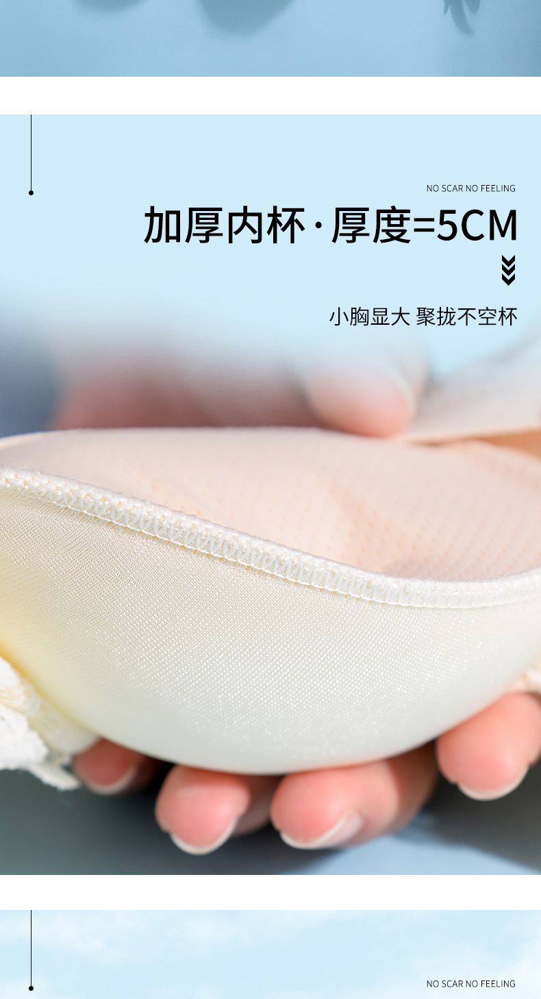 9216厚さ5cmラテックス下着小胸平胸が手のひらカップにスチールリングなしの乳房調整型ブラジャー