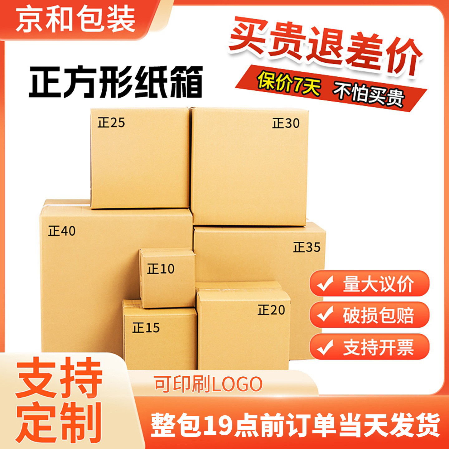 店主は正方形の段ボール箱を温かく押して卸売りします。3層5層の特硬速達で包装します。