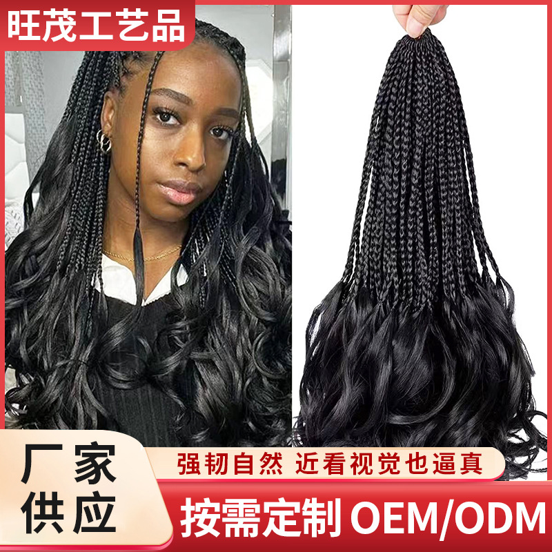跨境欧美化纤假发Box Braids Bohemian Curly三股辫飞子钩针发辫