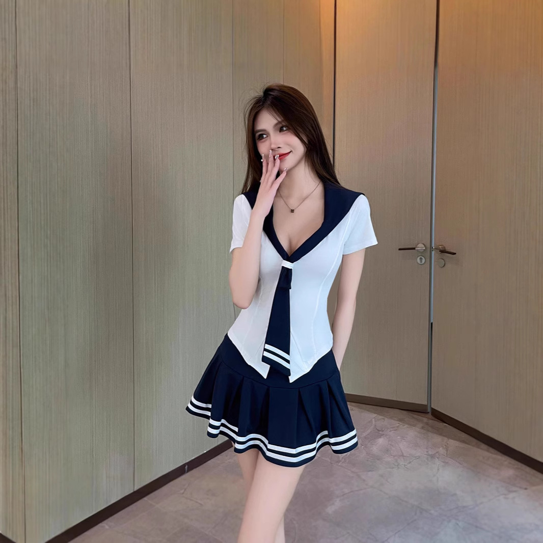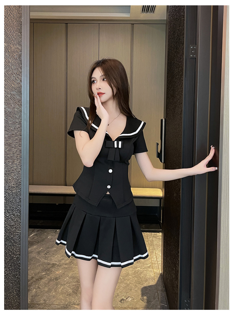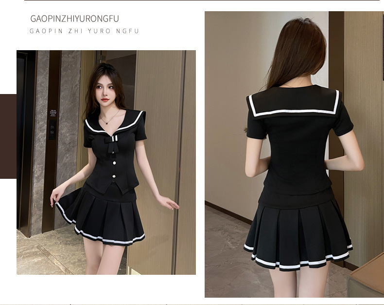 甘美減齢海軍襟上着セット女性秋修身長袖シャツウエスト半袖痩せスカート