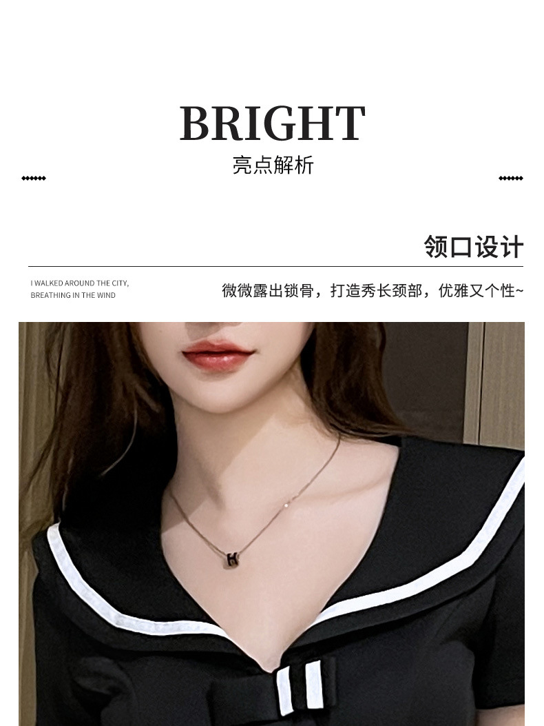 海軍の襟のワンピースvネックの女性の夏の半袖の気質は腰を収めてやせています。