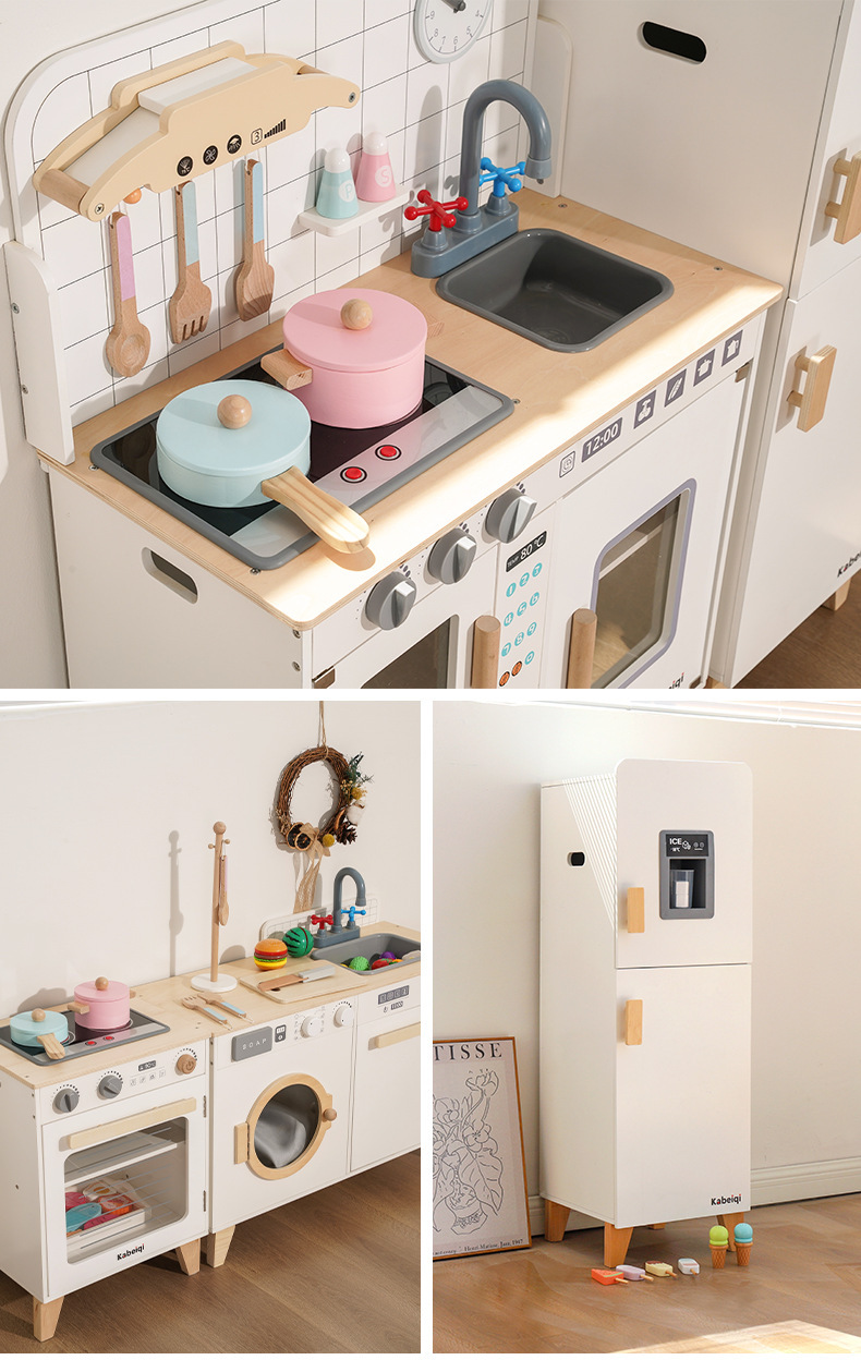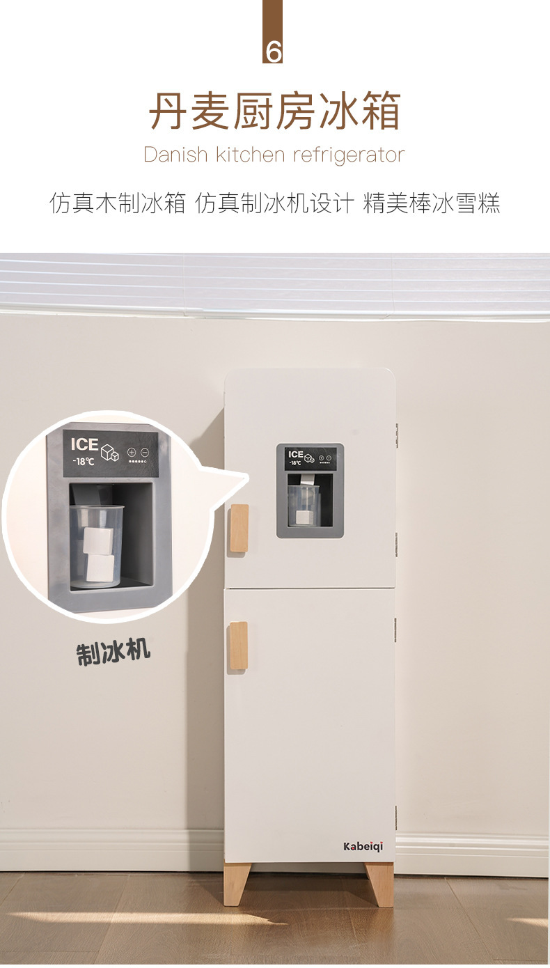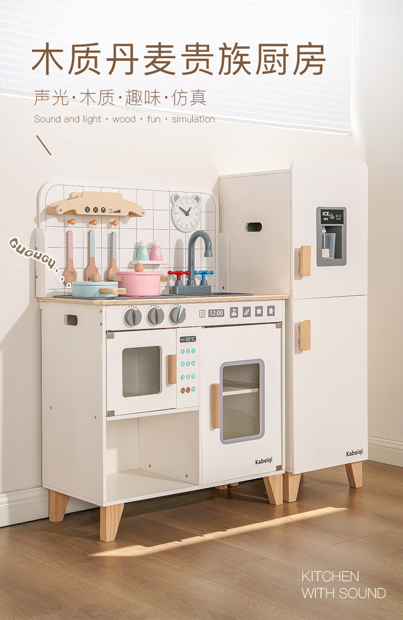 丹麦儿童过家家岁6厨房煮饭玩具仿真声光冰箱套装模拟做饭木灶台