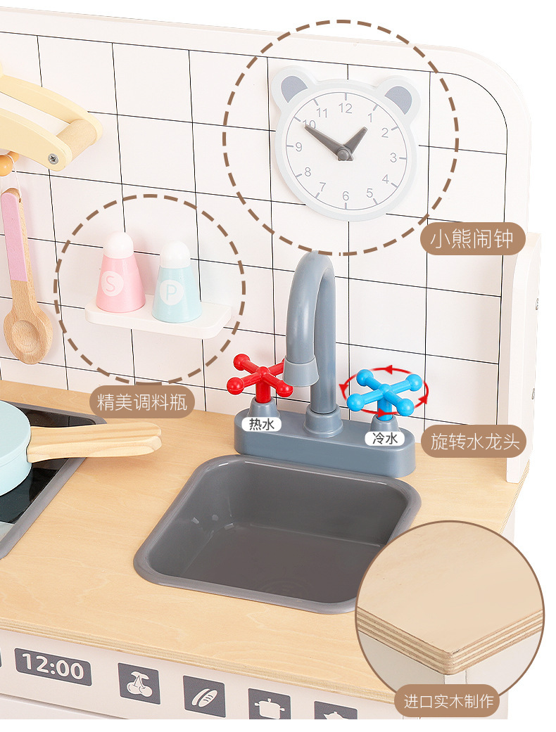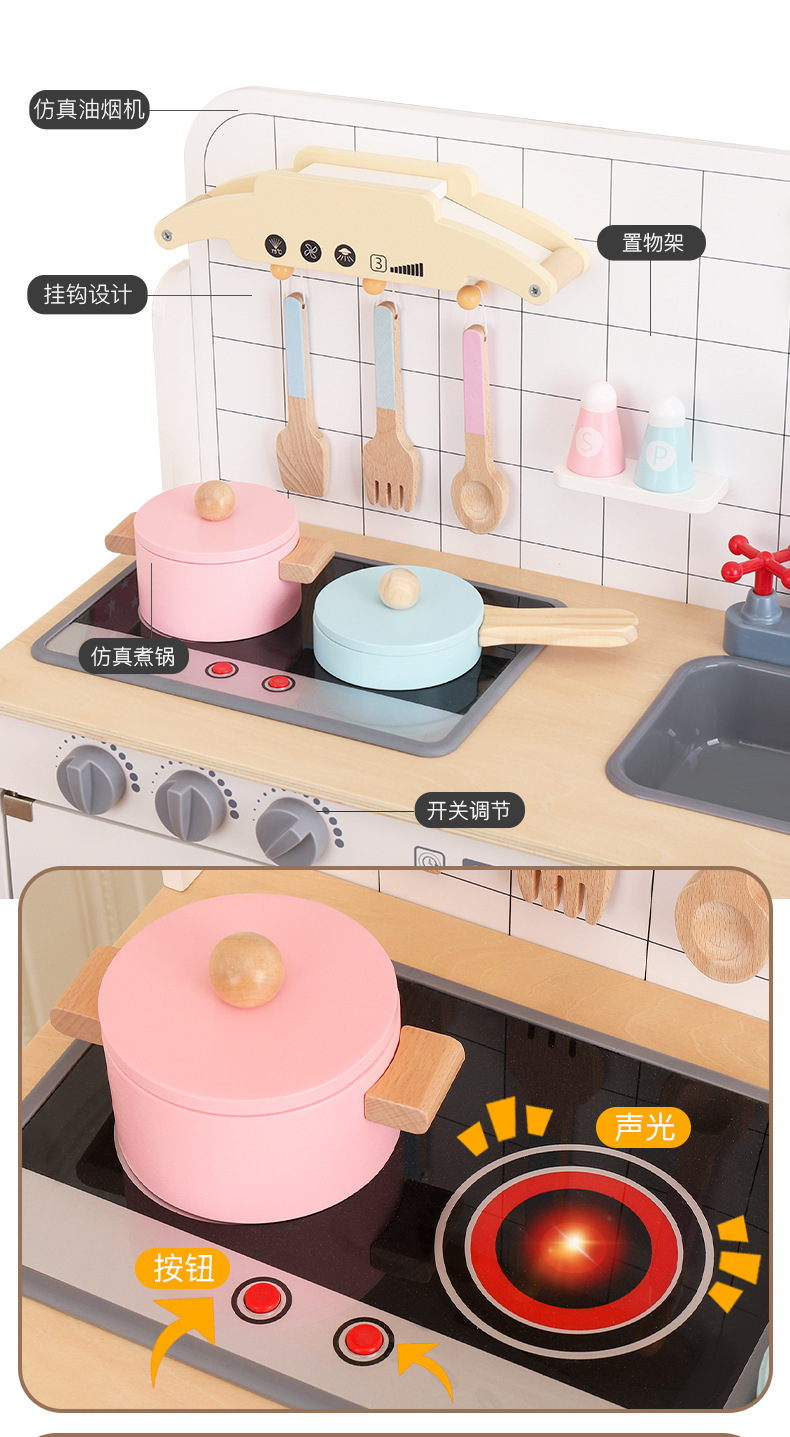儿童仿真过家家厨房做饭男女孩玩具套装木质厨房宝宝仿真木制厨具