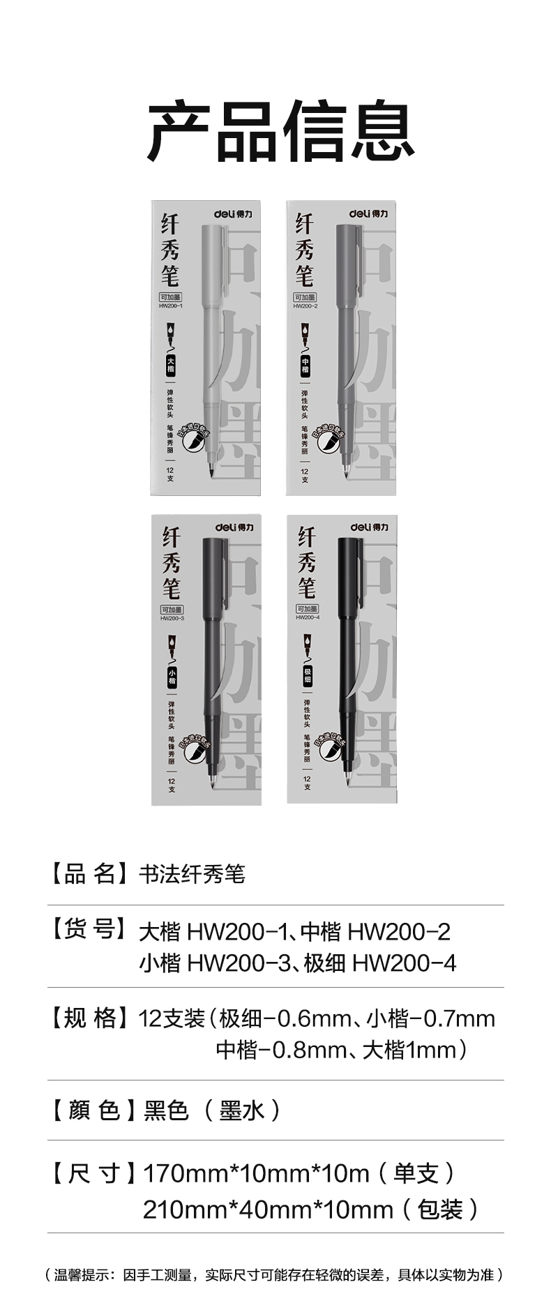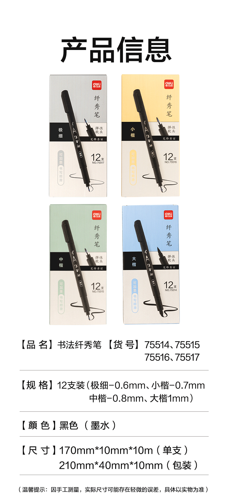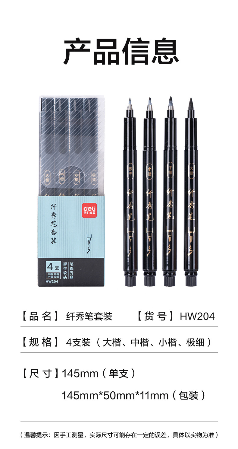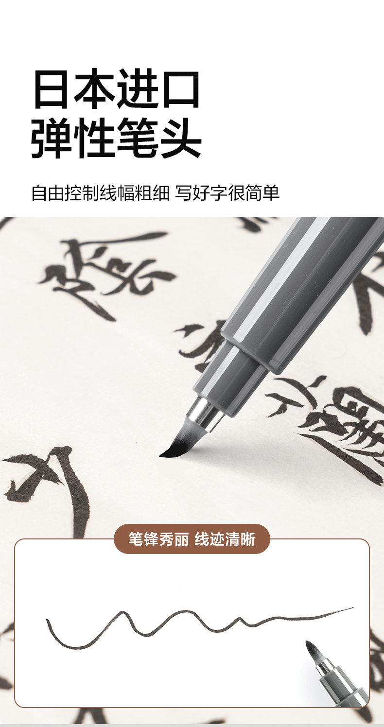 得力75514秀麗筆軟頭初心者大楷中楷書小楷書練習筆2本学生用書道筆