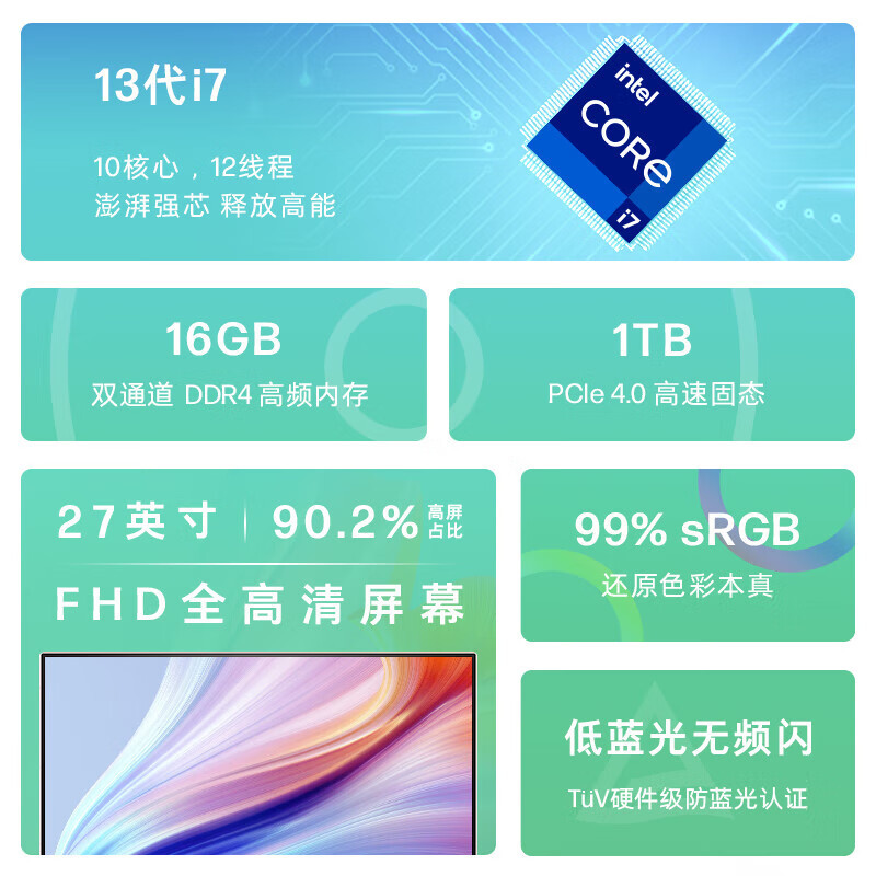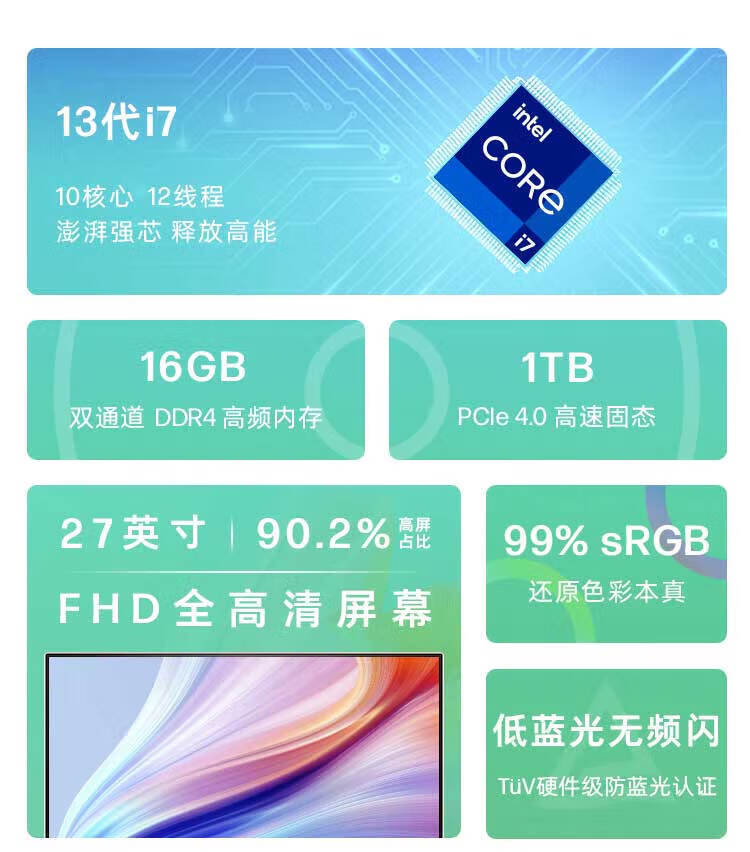 颜色 i3-1215U 16G 512G-27英寸一体机(无线键鼠),i3-1315U 16G 1TB-27英寸一体机(无线键鼠),i5-1335U 16G 1TB-27英寸一体机(无线键鼠),i7-1355U 16G 1TB-27英寸一体机(无线键鼠)
