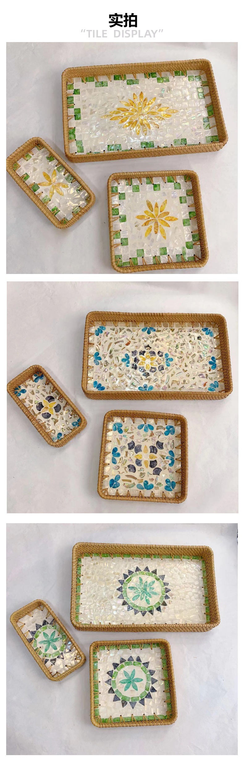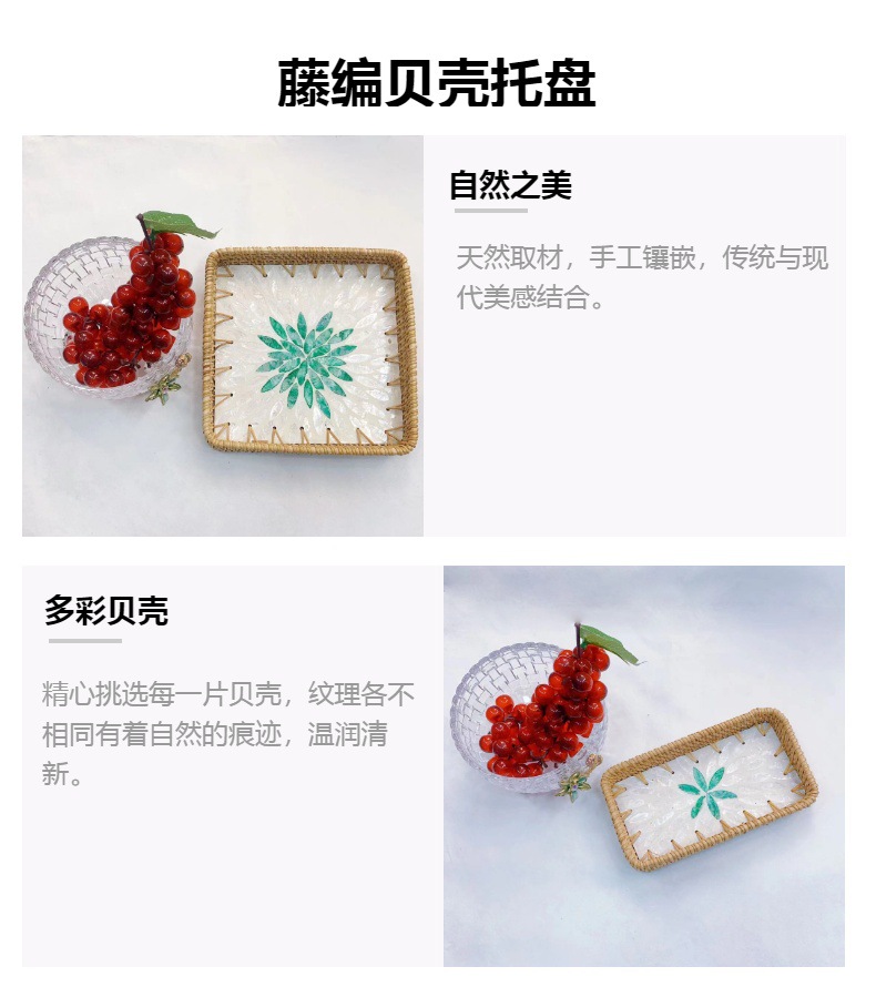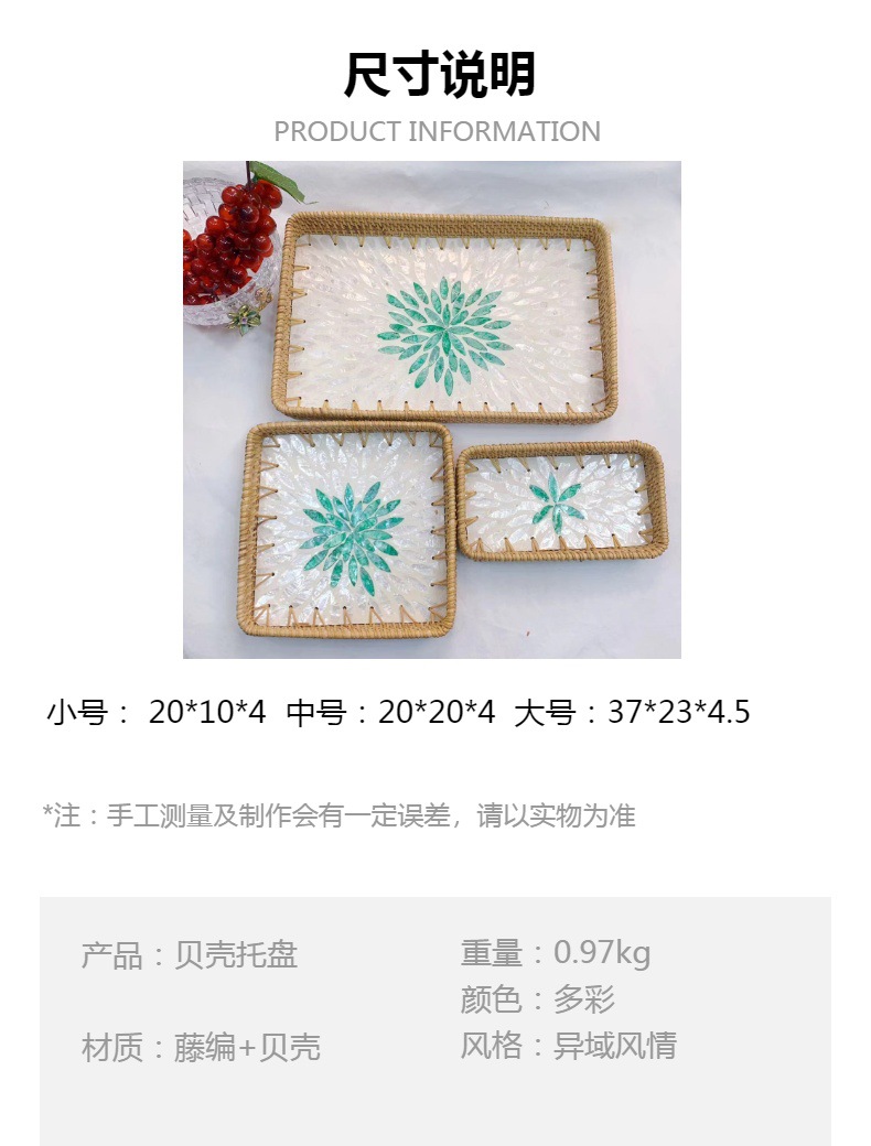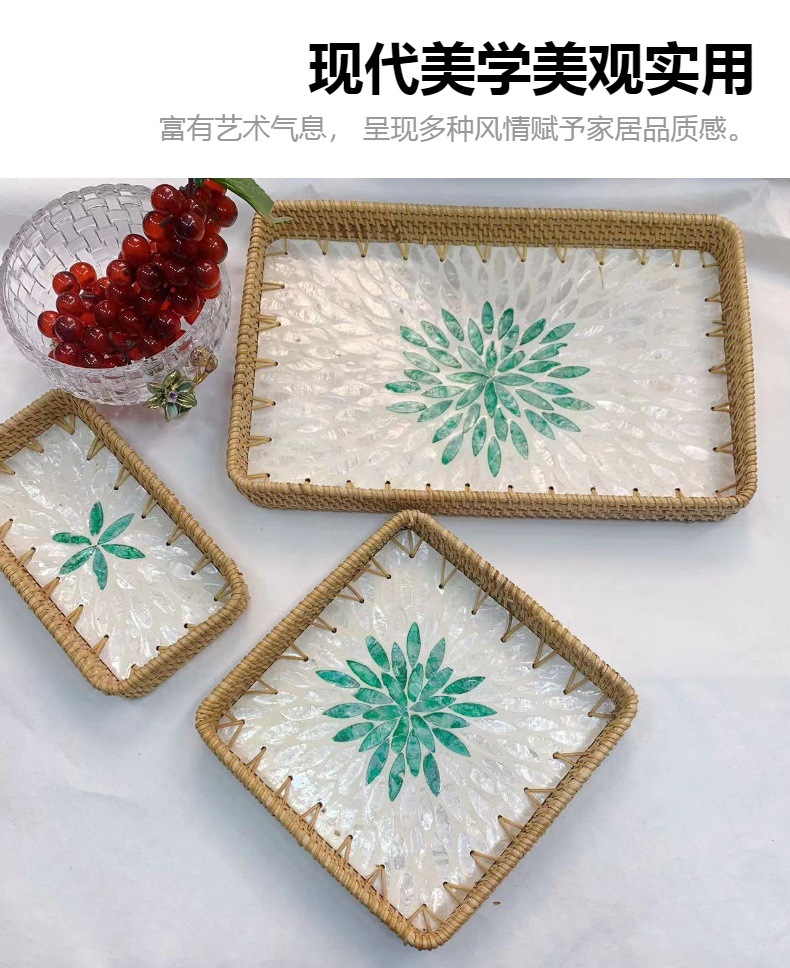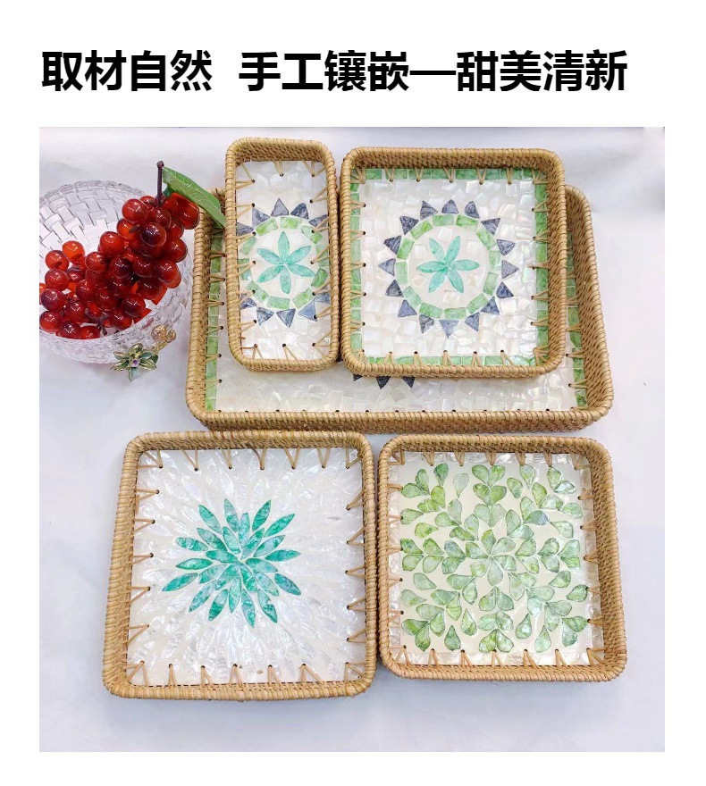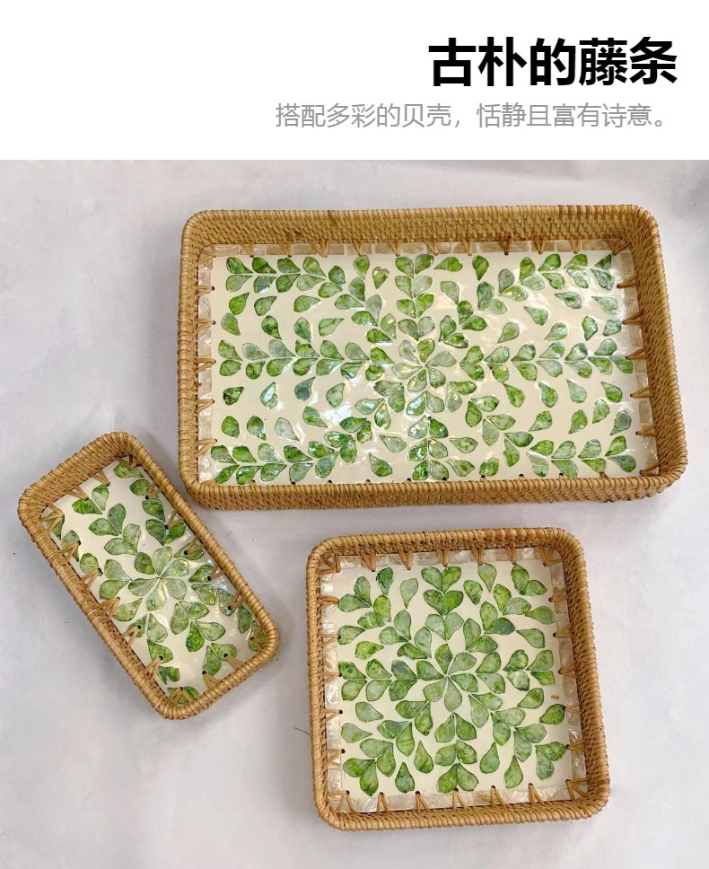 藤編み貝殻トレー果物皿多機能長方形トレー三点セット家庭用リビング収納かご