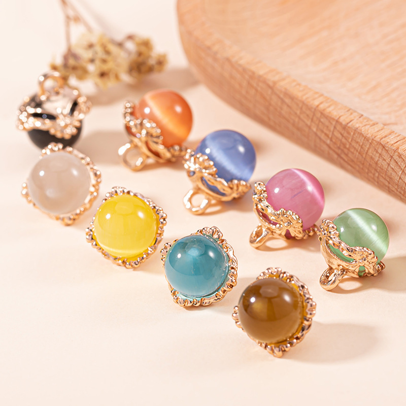 合金底托挂镀上色 镶嵌球状切面猫眼石 闪耀迷人