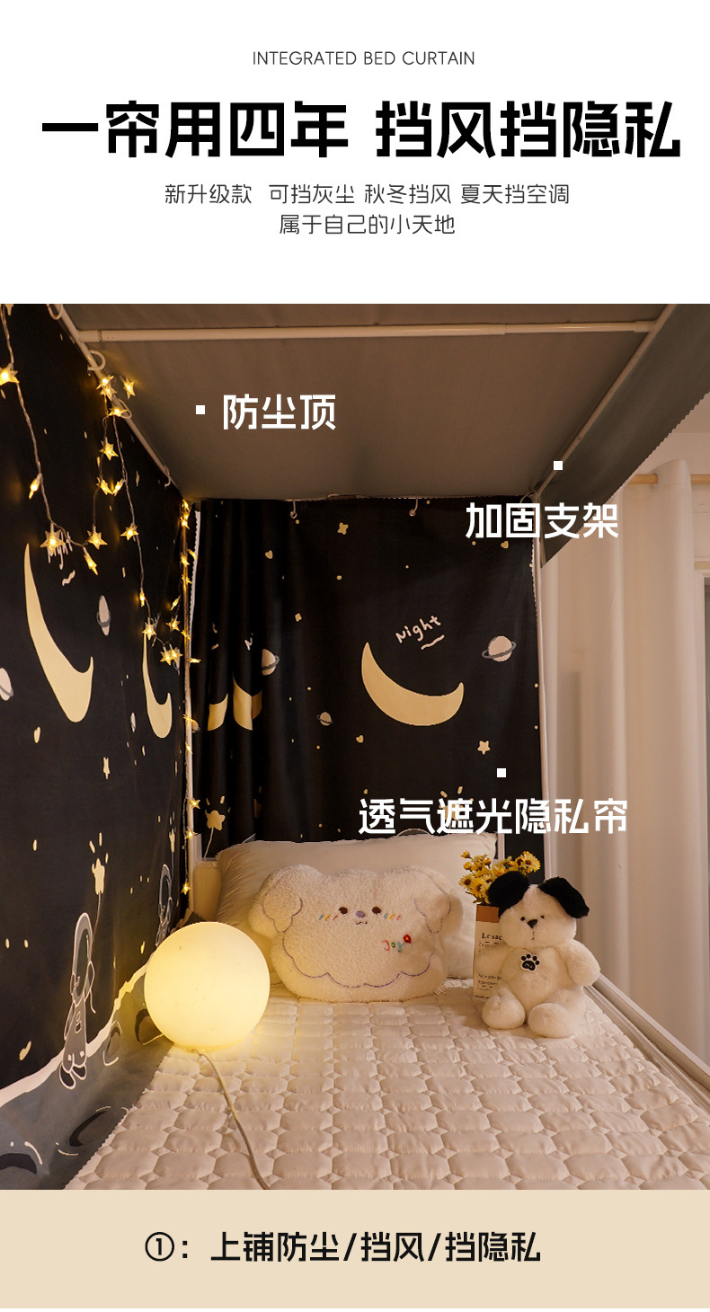 100% 強遮光ベッドカーテン寮上敷ベッドカーテン学生女子寝室下敷ベッド囲い布シェードカーテン