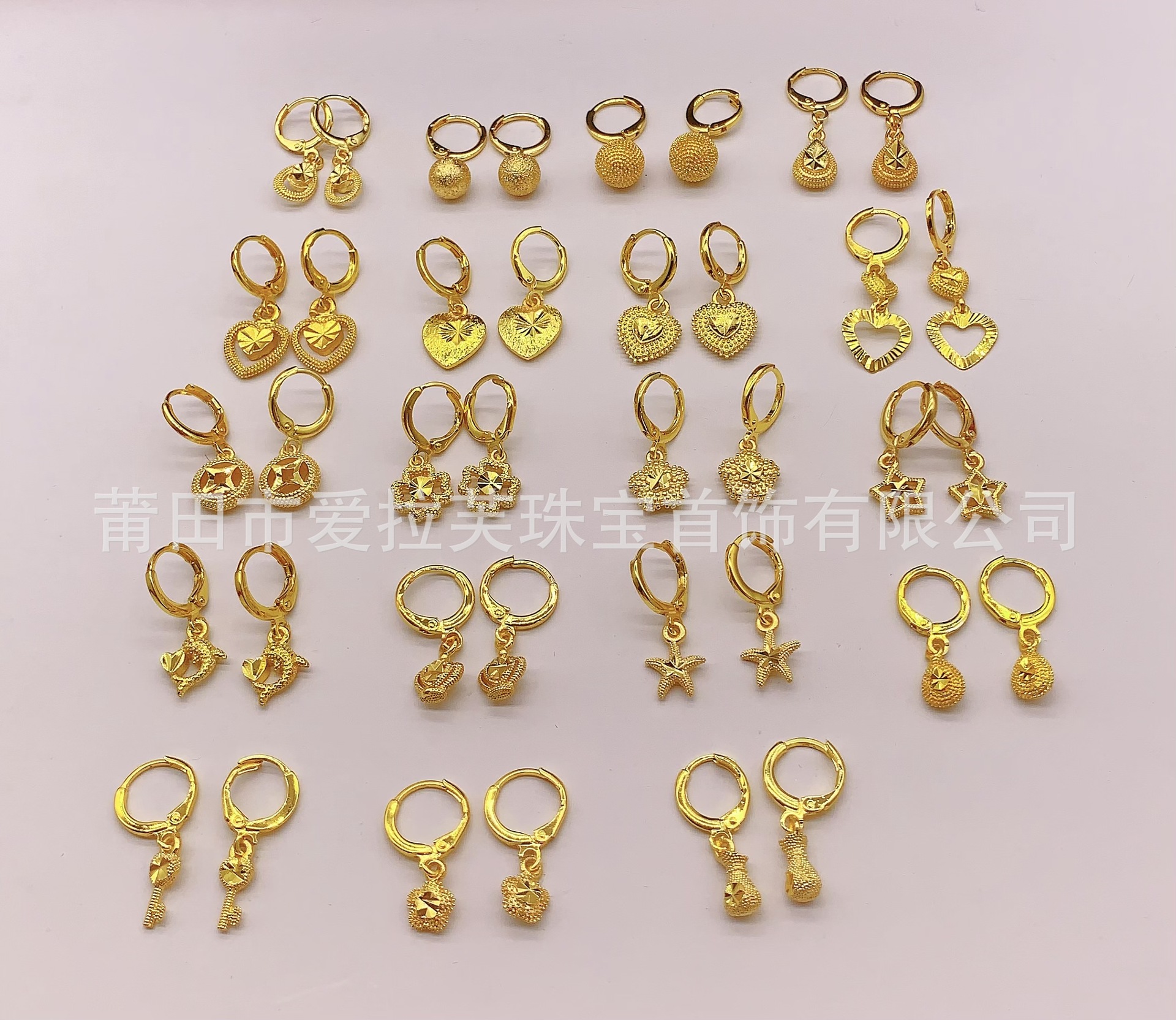 新しい金メッキピアス女性の人気ファッションジュエリーシンプルなピアスの多くのボール模様ピアス工場卸売り