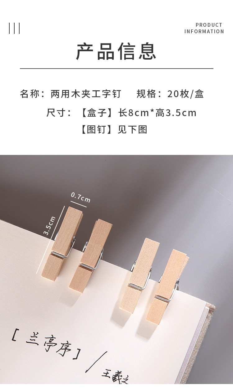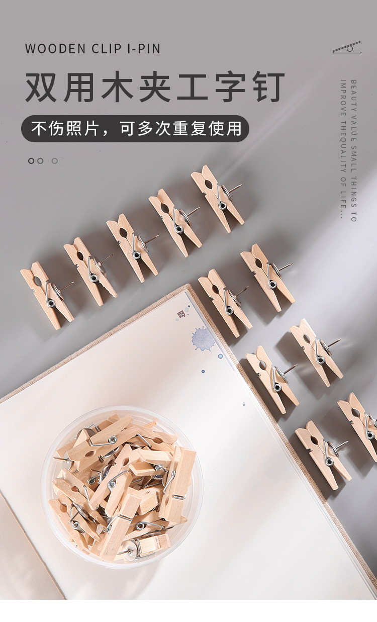 木质夹子两用图钉装饰挂钩带钉夹软木板学生固定照片墙留言毛毡板