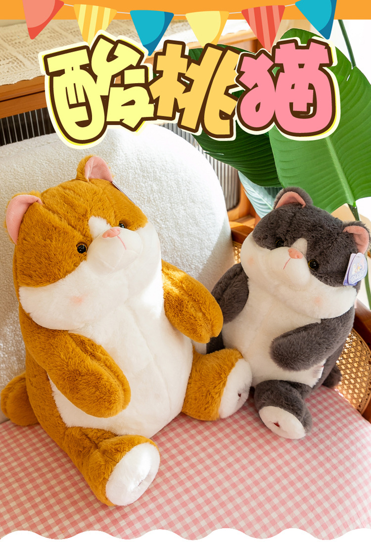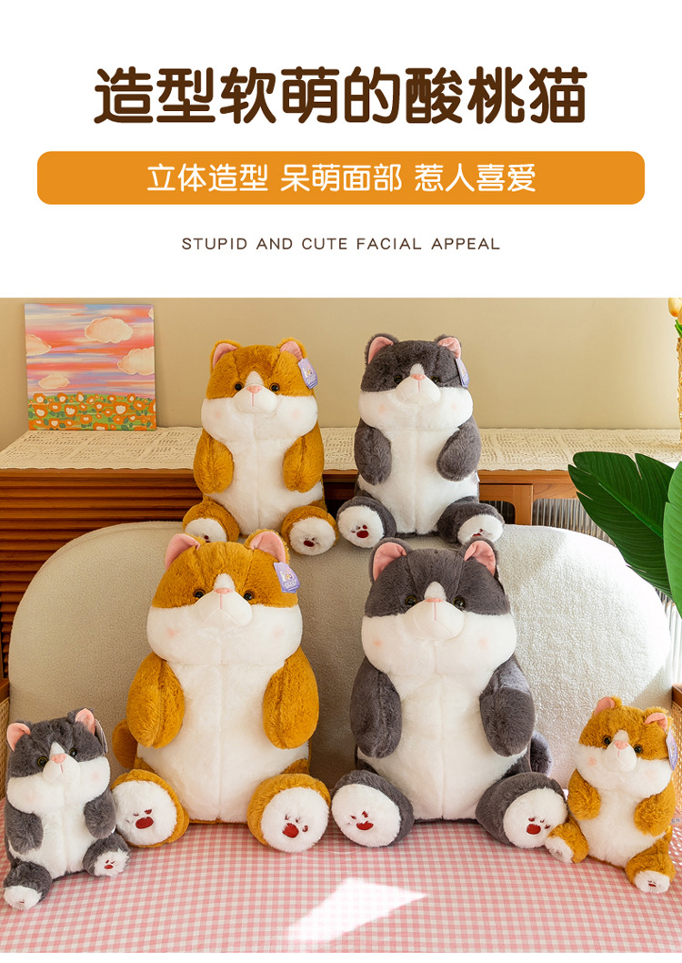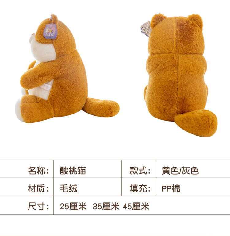 ぼんやりしている酸っぱい桃の猫のぬいぐるみの子供は枕を抱いて子供機の子供をなだめます。