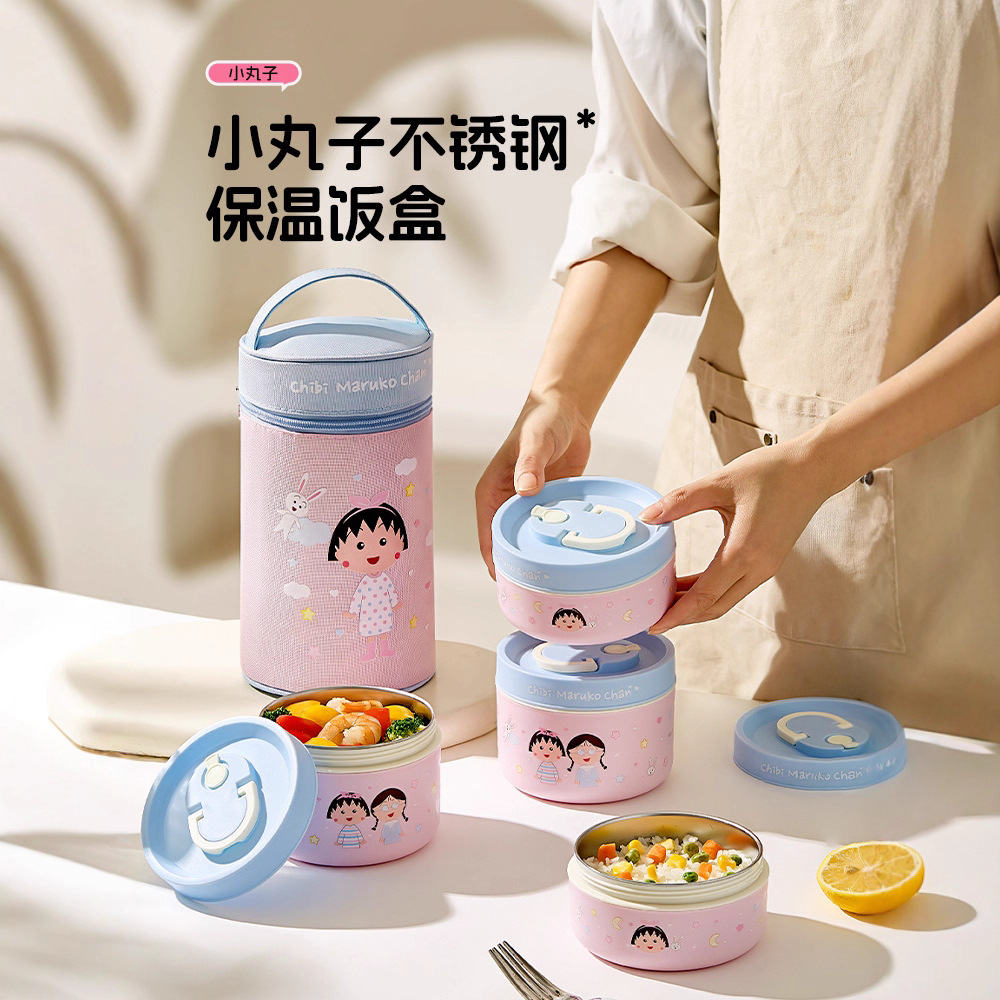ステンレス保温弁当箱保温桶電子レンジ日本式学生二重蓋付き円形食品級弁当箱