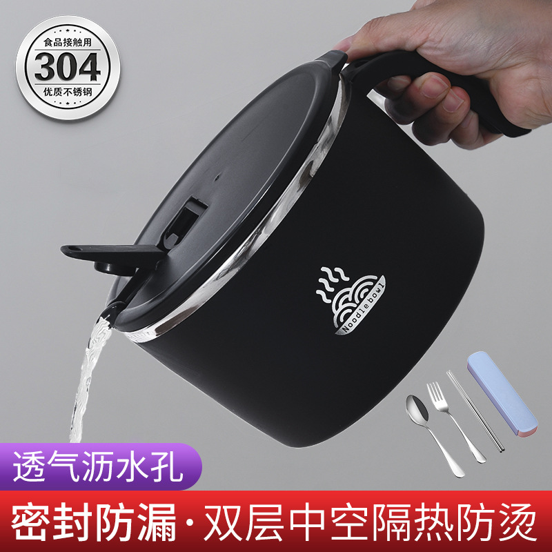 蓋付きステンレスインスタントラーメンボウル、水切り可能な学生寮ボウル、食堂食事ボウル、サラリーマンボウルと箸セット食器