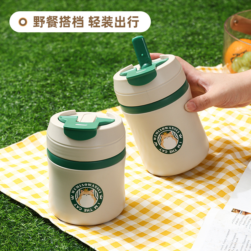 吾喵トントンカップコラボモデル ダブルドリンクポータブルカップ 携帯ストローカップ コーヒーカップ ギフトメーカー直送 漏れ防止