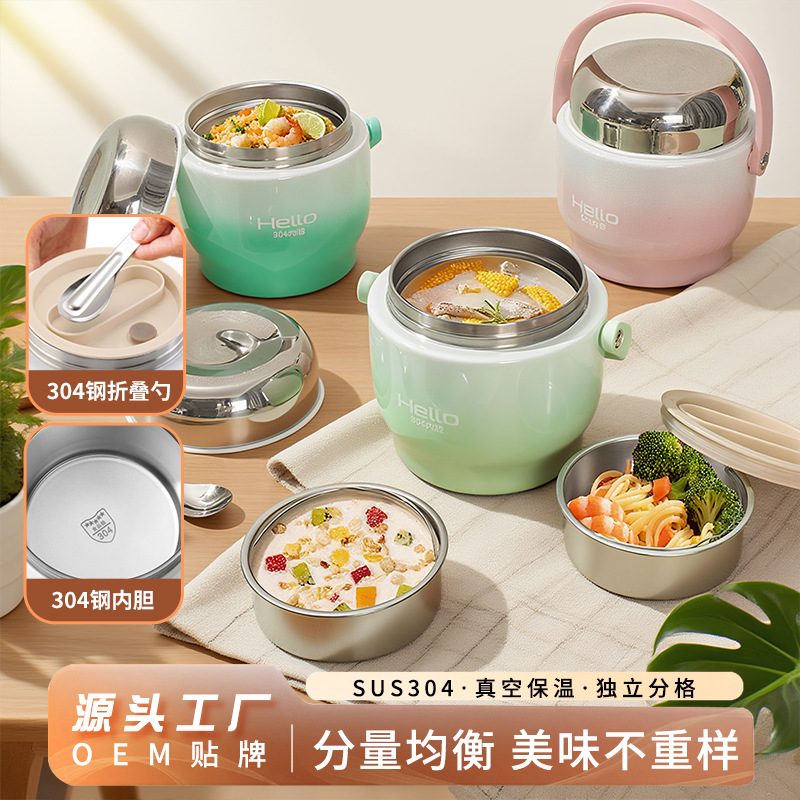 304ステンレス真空提鍋保温桶蓋付き密封学生保温弁当箱小型携帯弁当箱