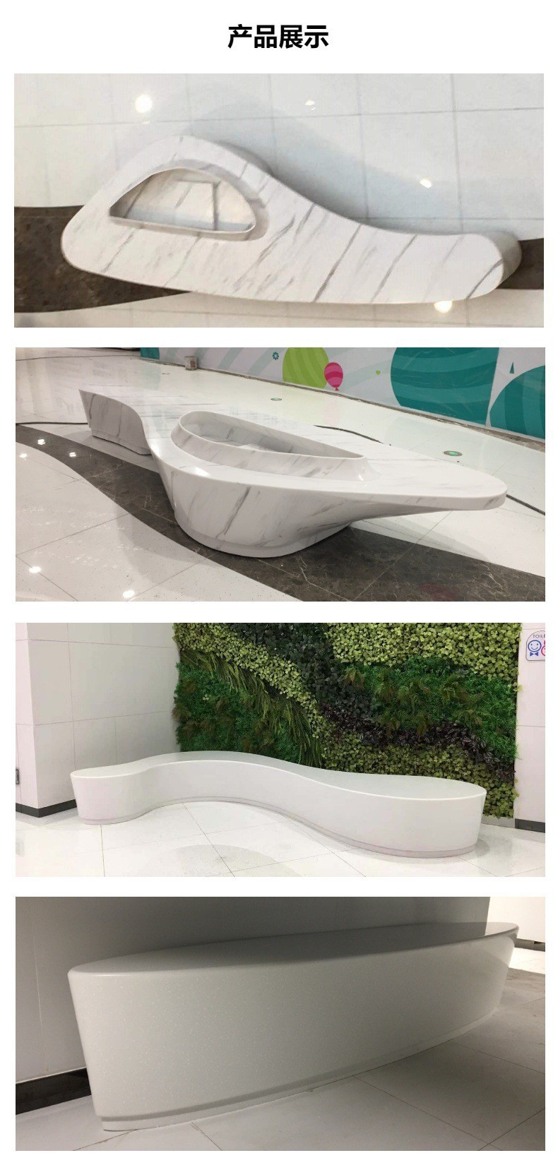 人造石純白カウンタートップシンプルシームレス特殊形状受付デスク大型病院ナースステーション受付カウンターカスタマイズ