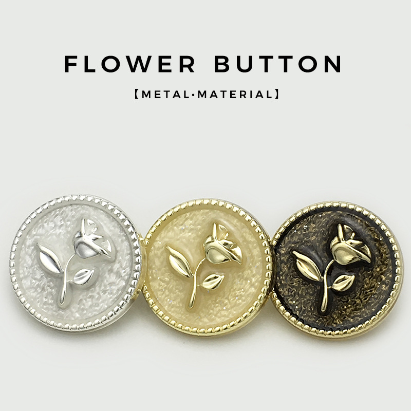 百合カラー点油金属ボタン花チューリップセーターコートボタン桃心抜きボタン
