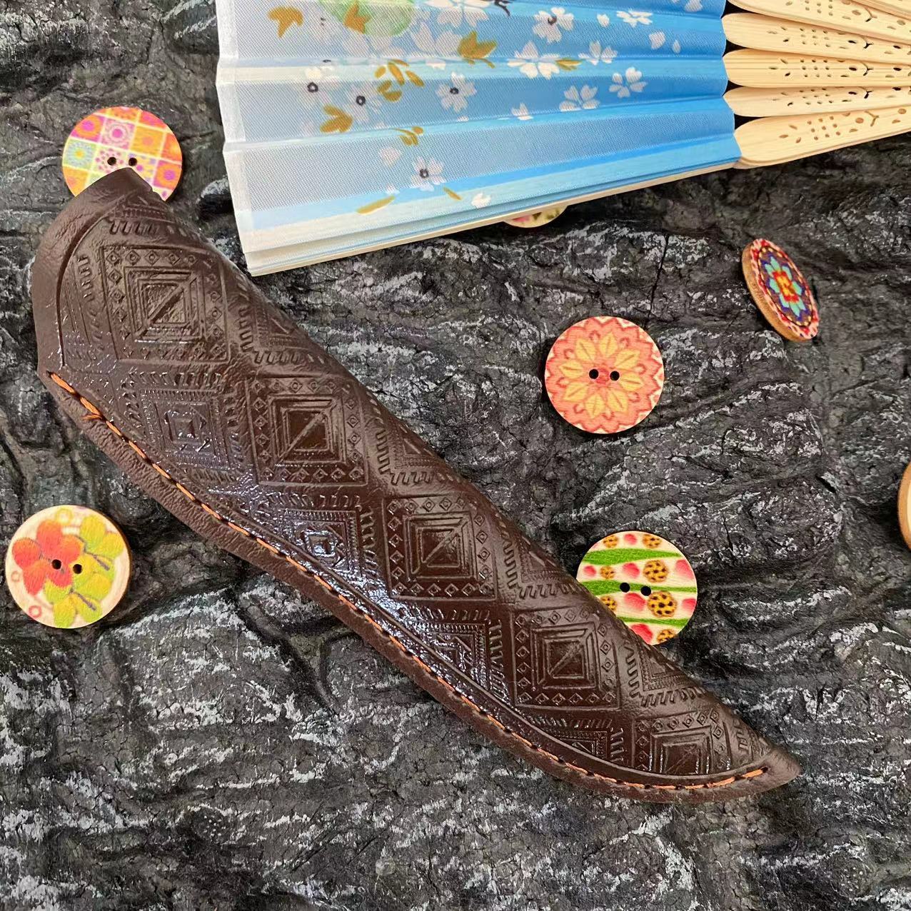 現物の新型の手作りの頭の層の牛革の刀のカバーの彫刻の花は身につけて収納して厚い保護の刀の鞘の刀のカバーを保護します。