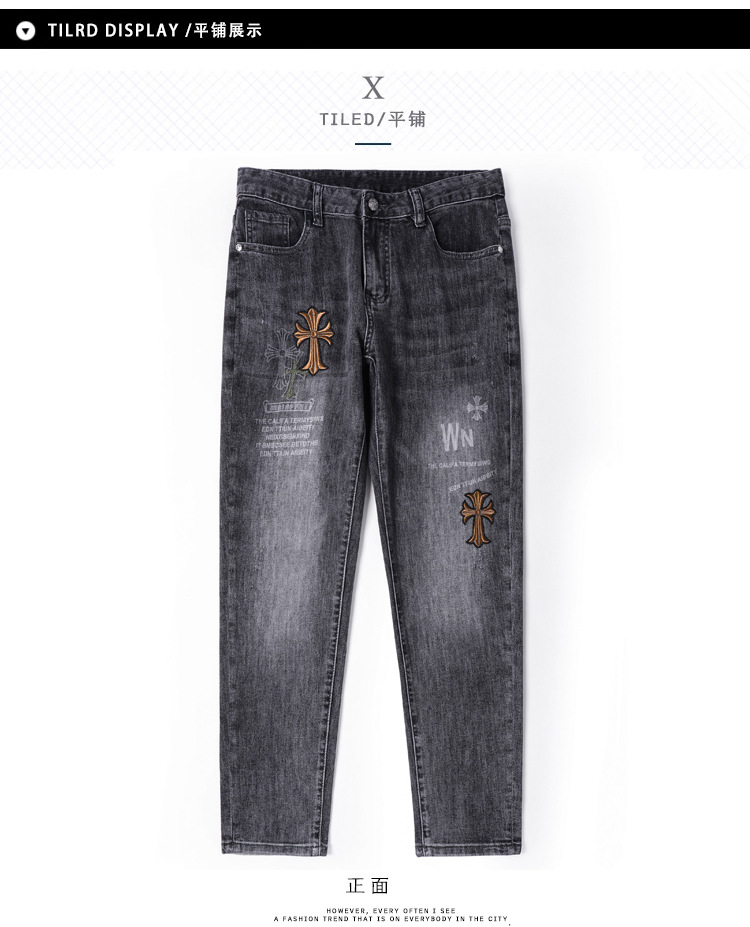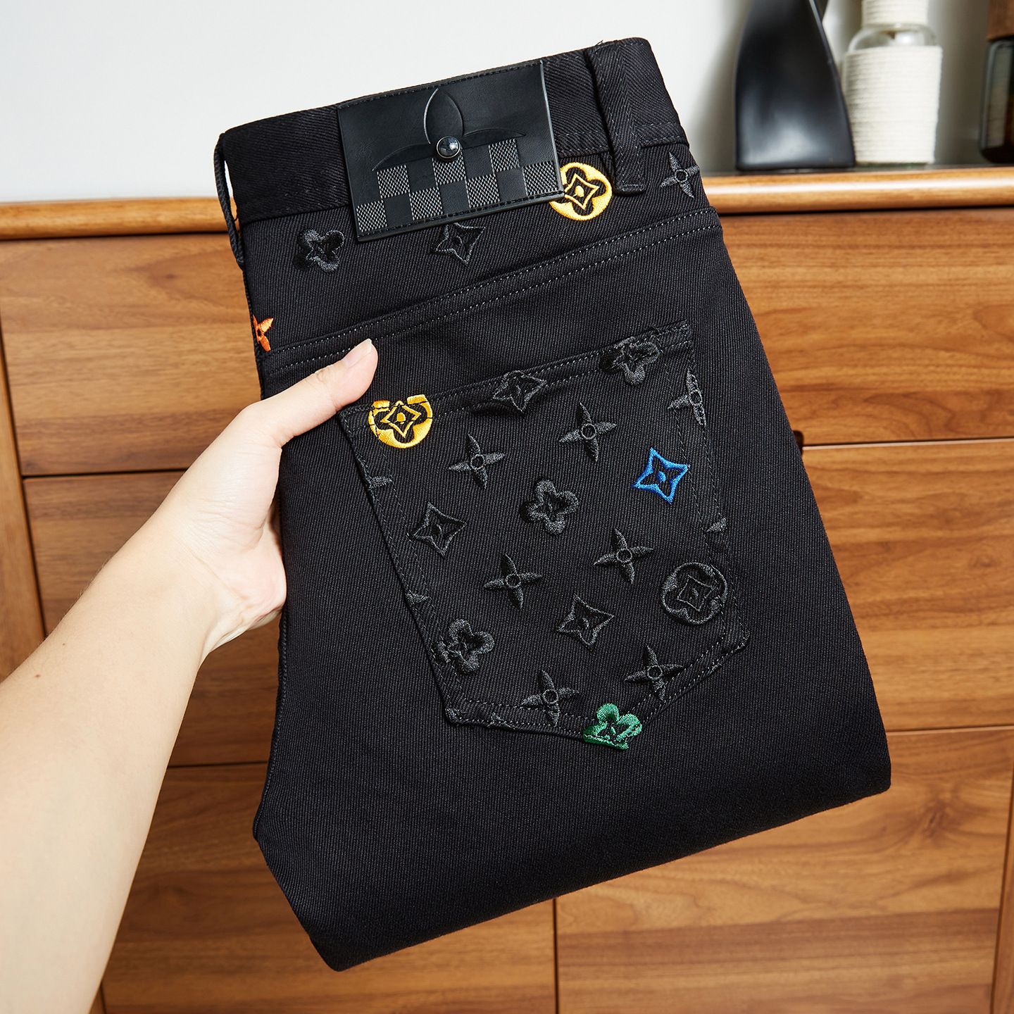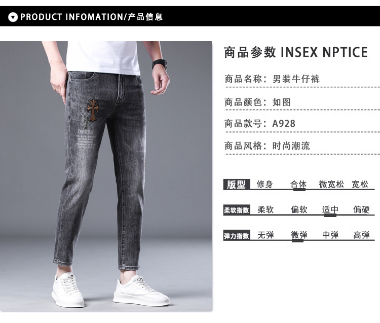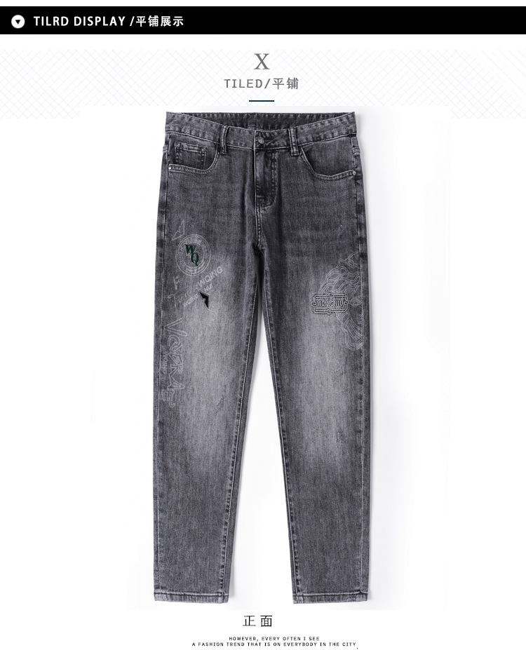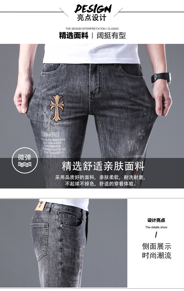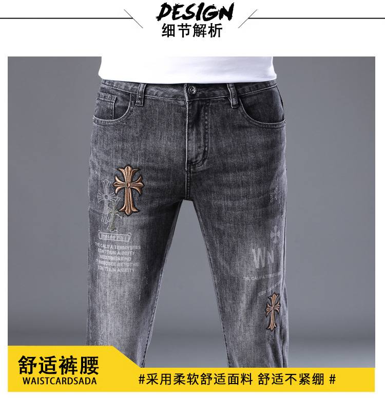 新塘新商品潮牌刺繍ジーンズ男修身小足早春新品男性夏カジュアル長ズボン男