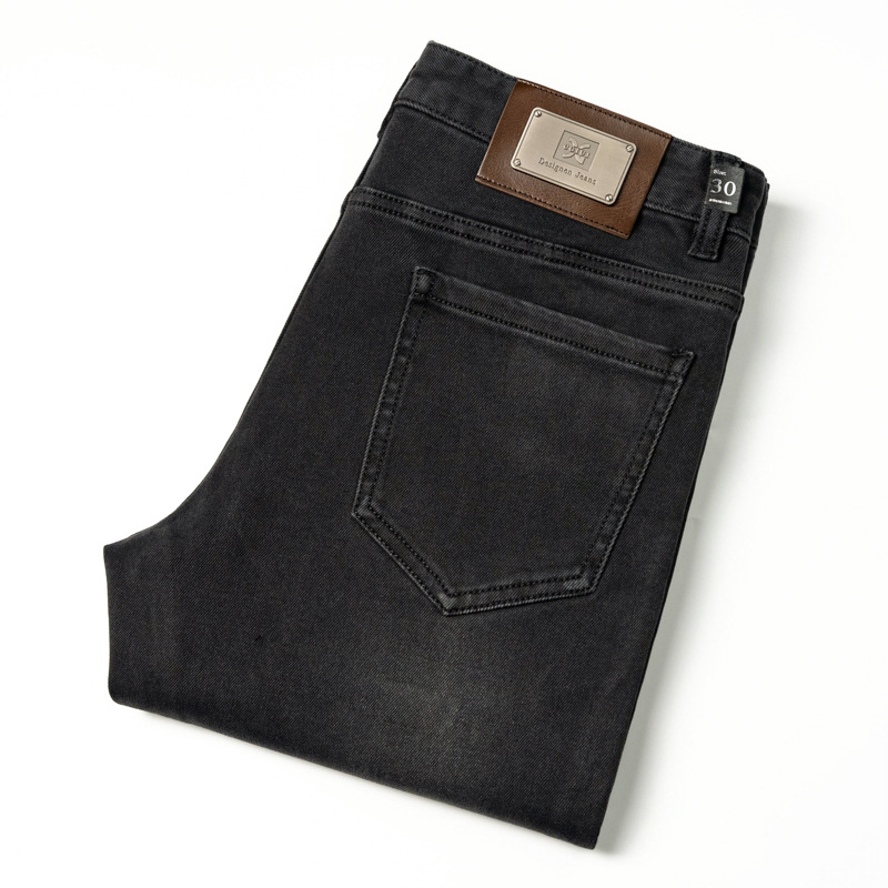 新塘工場は軽豪華ジーンズ男性黒白色三防生地のカジュアルな弾力を提供しています。